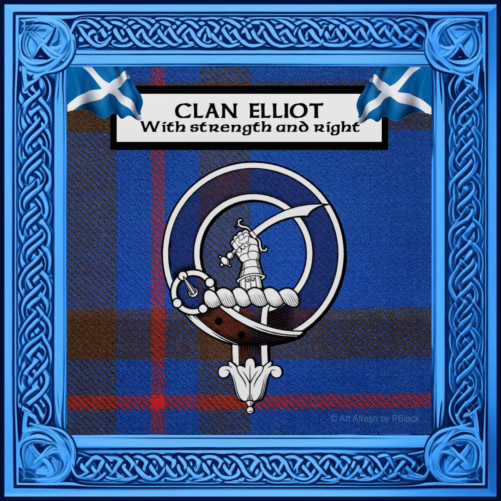 CLAN ELLIOT TARTAN BADGE & MOTTO