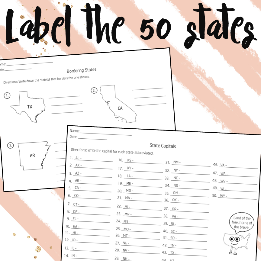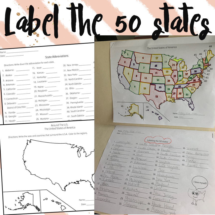 Label the 50 States Worksheets