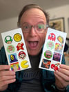 8 stickers as shown. Most of these are the member emojis. You get two "Good Morning Haas" logos. Each sticker is approximately 2 x 2 inches. Pen shown for scale. Ships to USA only.