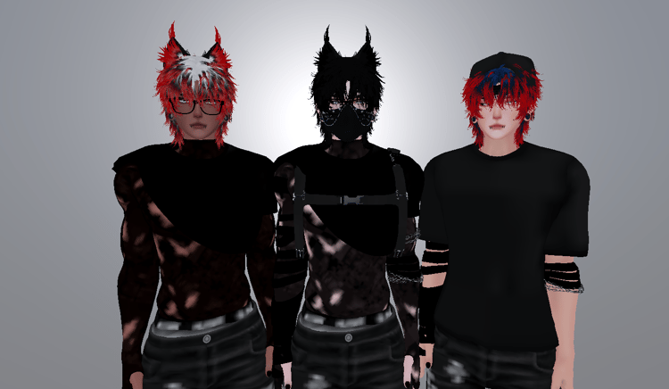 Head (HEAVILY EDITED, DO NOT REUSE)/ Body / Tattoos / Hairs, Skin Texture / Kisses, Scars Texture / Cargo, Sweater, Jacket, Mask / Lynx Set And Hair / Blind Fold And Gag / Shirt / Glasses / Skate Shoes, High Top / Y2k Hat / Horns / Arm Wrap / Gas Mask / Fire Hands, Fire, Holding Hands Particles / Ears And Gauges / Body And Face Stickers / Face mask & Waist Flannel / Necklace / Arm Chains / Rings / Hand Chains / Harness, Pulled Shirt, Sweatshirt / Skinny Jeans / Face 1 2 / Fishnets / Tank Top / Astral Eyes / Eyes