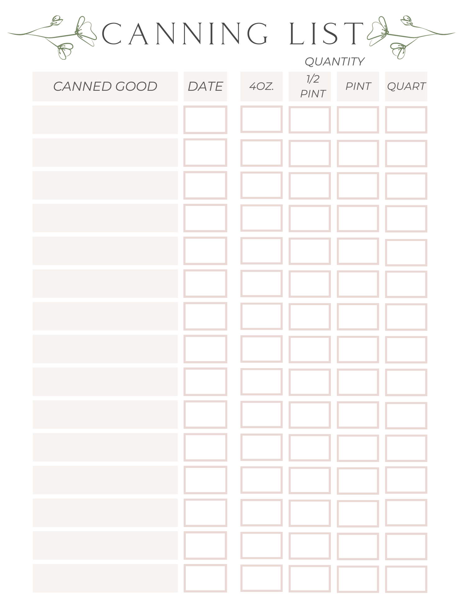 These printable canning labels are perfect for keeping your pantry organized! This download allows you to print as many as you like for yourself or gifting to others. You worked hard to preserve that food, so why not make it look cute? Plan your next canning projects and stay organized with a recipe sheet, canning inventory sheet and weekly calendar.