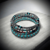 Inspired by Southwestern and bohemian design, this multi-stranded bracelet blends earthy tones with polished metallic elements for a versatile accessary that transitions seamlessly from casual wear to dressed-up occasions. The combination of smooth turquoise beads, decorative spacers, and seed bead accents adds depth, movement, and visual interest from every angle.
