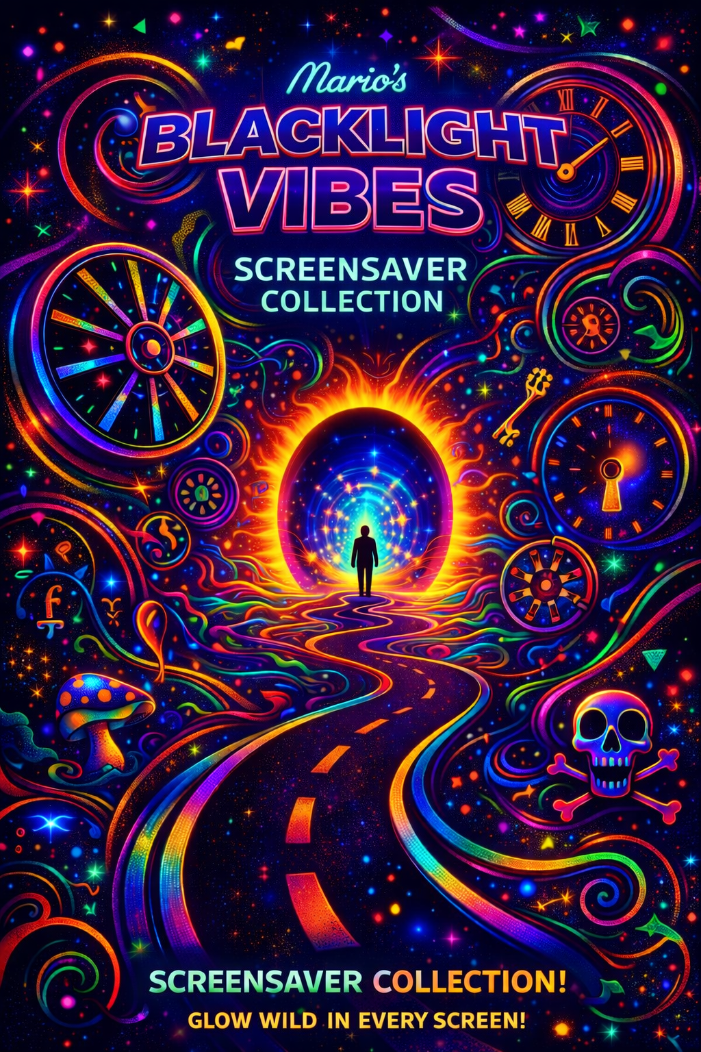 Perfect for desktops, laptops, TVs, tablets, and home-theater screensavers, this collection turns your device into a rotating gallery of modern digital blacklight art.