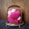 This is the laziest way to knit heart ornaments I could think of. They are knit bottom-up in the round and there is only one loose end to sew in for finishing. Knit it in any yarn of your choice, but make sure your tension is high enough to hide the fibre fill. Due to the construction, this pattern is perfect for gradient yarns as the yarn is not cut before the upper edges are grafted together.