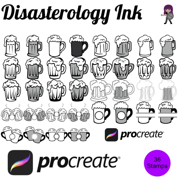 Beer Drinking Mugs Set 1 Procreate Brush Stamps, 36 Beer Glasses