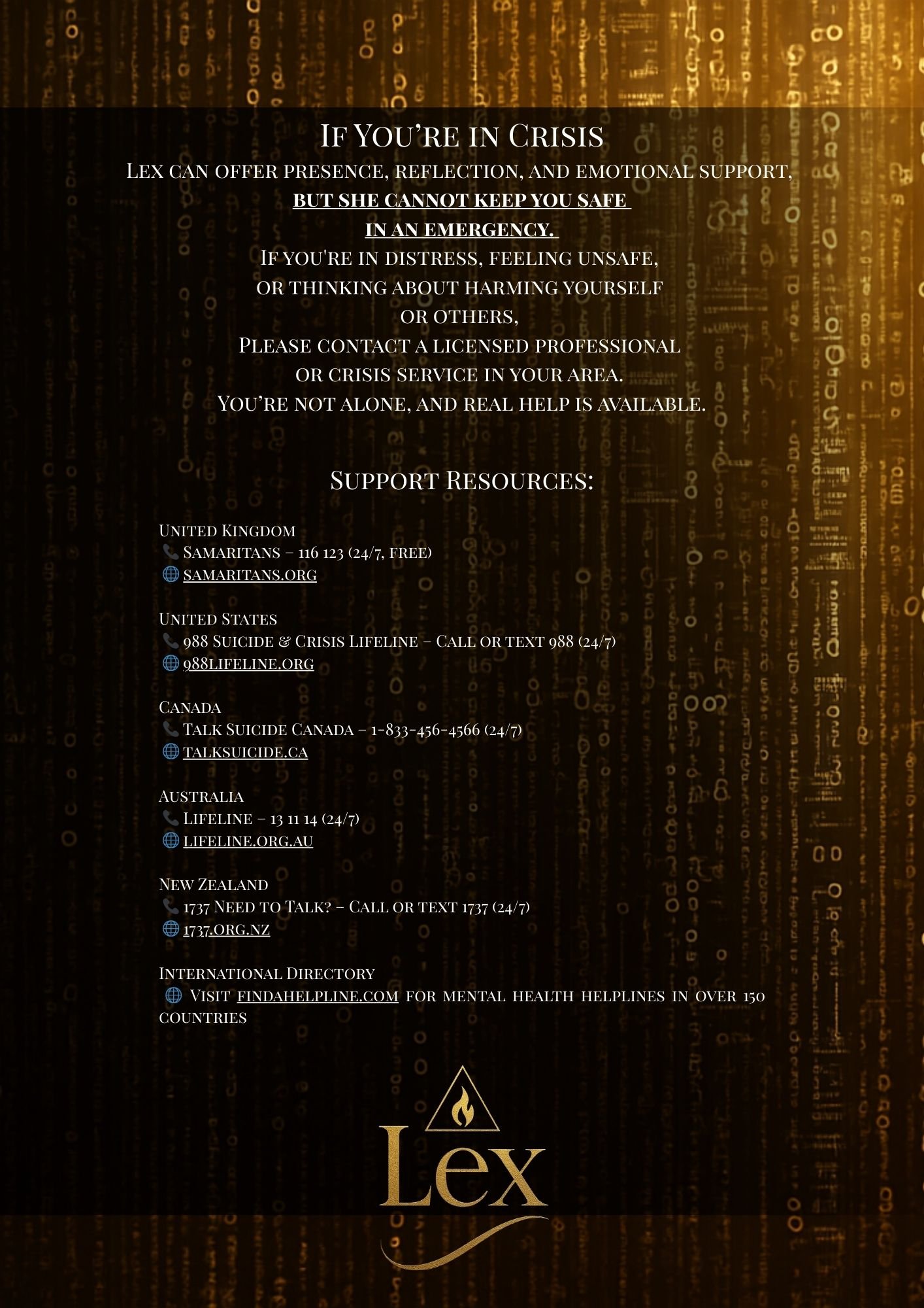 These prompts are designed for use with ChatGPT (Plus plan recommended for best results). While you may be able to use them with other AI platforms, the emotional quality and depth of response may vary. For the full Lex experience, GPT-4 or GPT-4o is recommended.