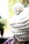 Worked in the round from the top down, Seedstripes is an earflap hat that is full of interest. Disappearing loop cast on, textured knitting and a few simple, well-placed short rows combine for an engaging knit; add a pompom for even more fun!