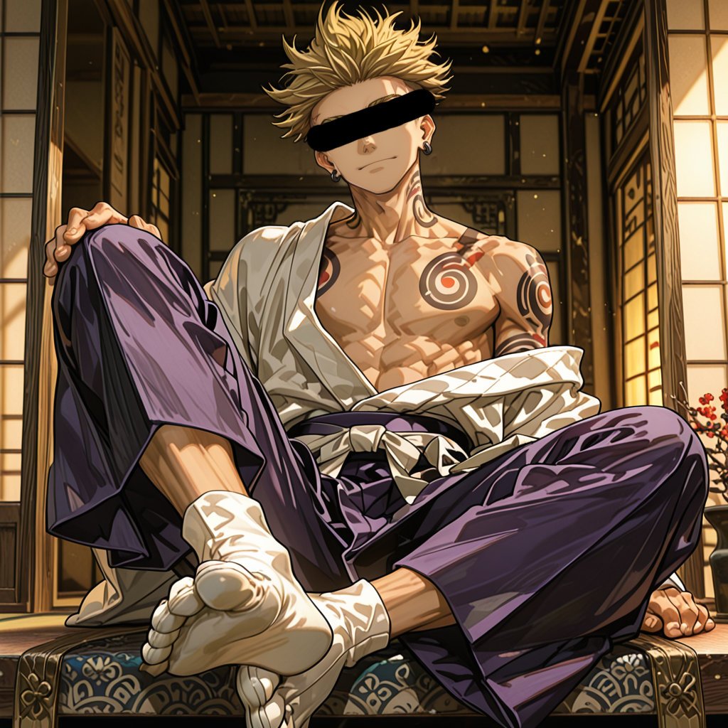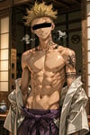 日本の正月をテーマに、着物を着用している男性を、キャラクターごとにお任せ作成しました。男らしいキャラクターの魅力を思い切って表現しました。