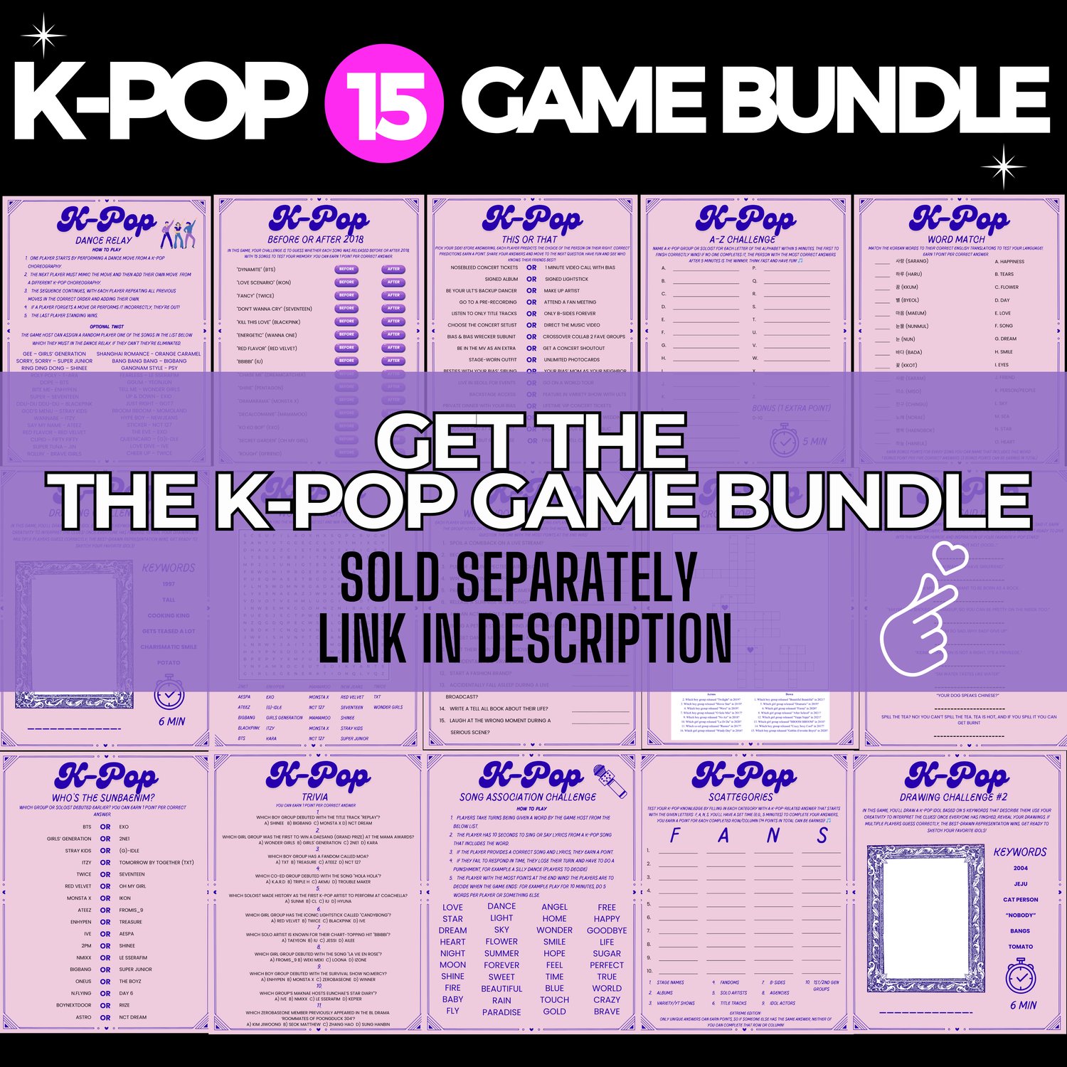 🎉 K-POP Game Bundle (15 Games): https://sumitemplates.etsy.com/listing/1850139168/printable-k-pop-game-bundle-k-pop-trivia