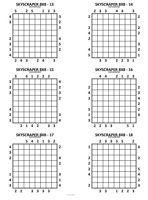 Dan is dit boek iets voor jou! Het bevat honderden Skyscrapers-puzzels, een Japanse uitvinding die je hersenen op de proef stelt.