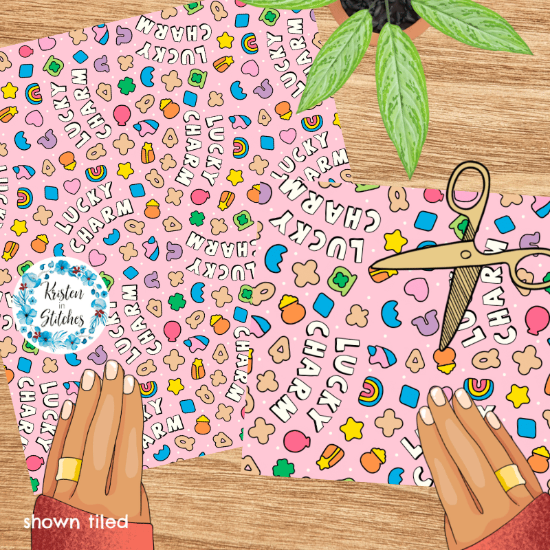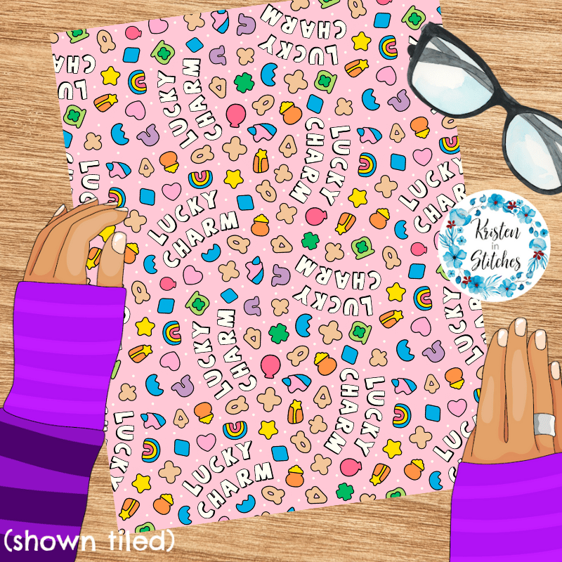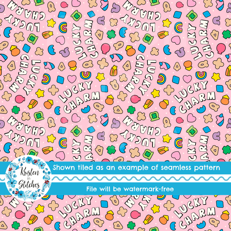 Lucky Charms Seamless Pattern, Saint Patrick's Day Good Luck Shamrocks and Rainbows