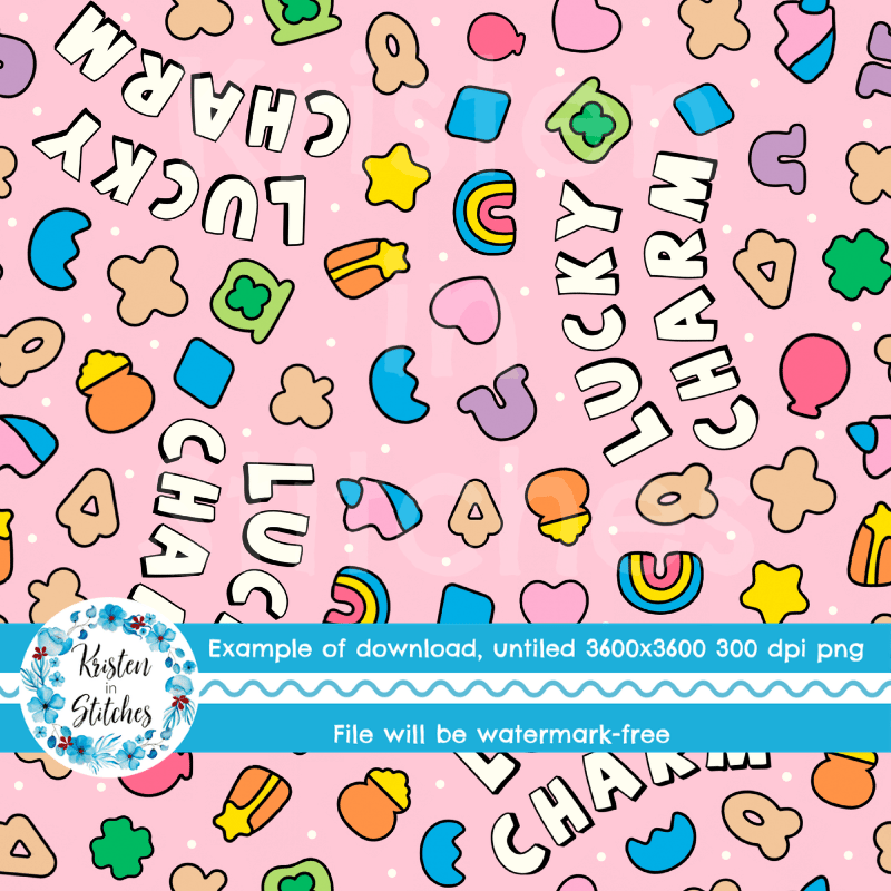 Lucky charm marshmallows, with rainbows, stars, balloons, shamrocks and unicorns.