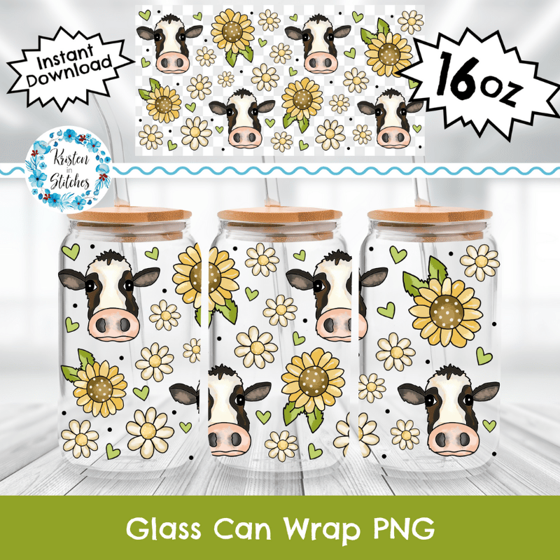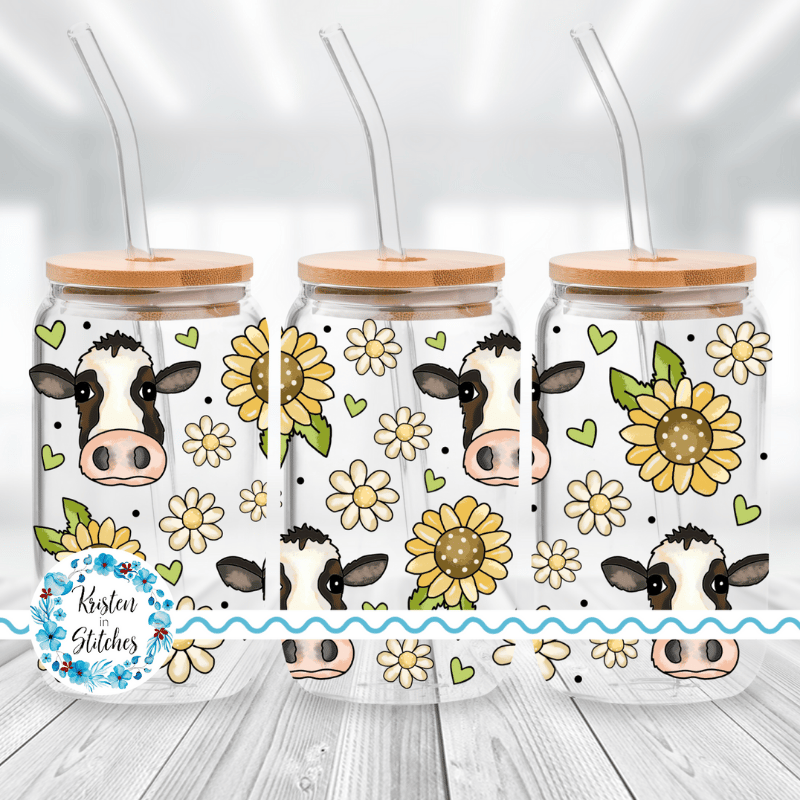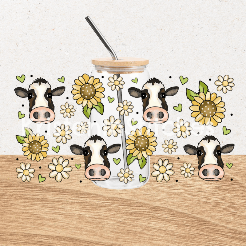 Cows Daisy Flowers Sunflowers Glass Can Wrap Transparent PNG, Farm Life