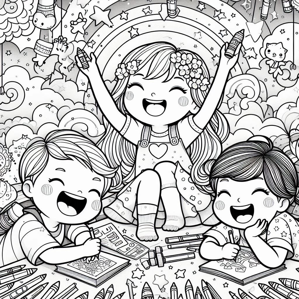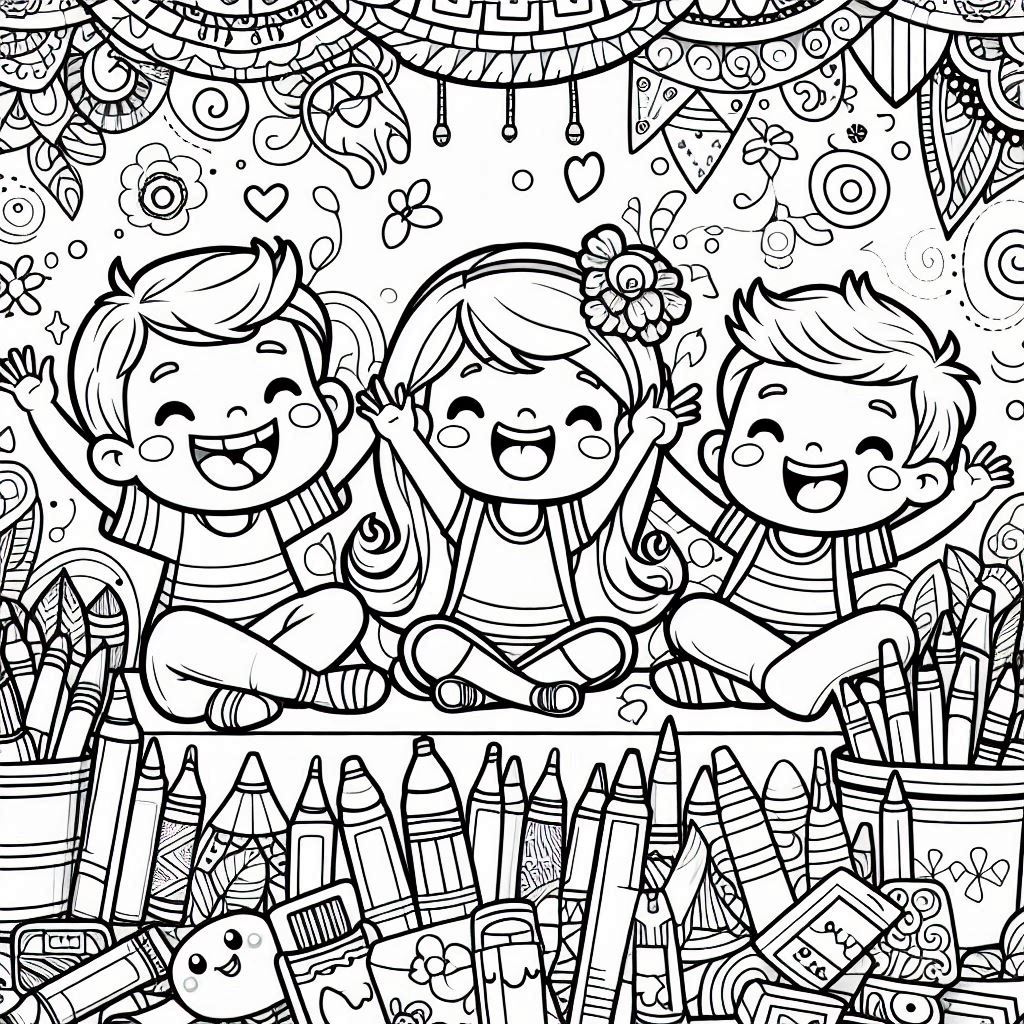 Happy Children, 60 designs, coloring ebook, digital printable product, instantly download