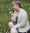 The sample is knitted in the colorway Ivory.