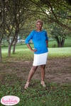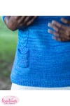 The Liana Pullover is an elbow-length sleeve pullover sweater featuring a front pocket out of which a vining cable creeps up towards the neckline. It is a classic raglan-style sweater with a faux button placket at one shoulder. Have fun with your button choices to express wearer individuality!