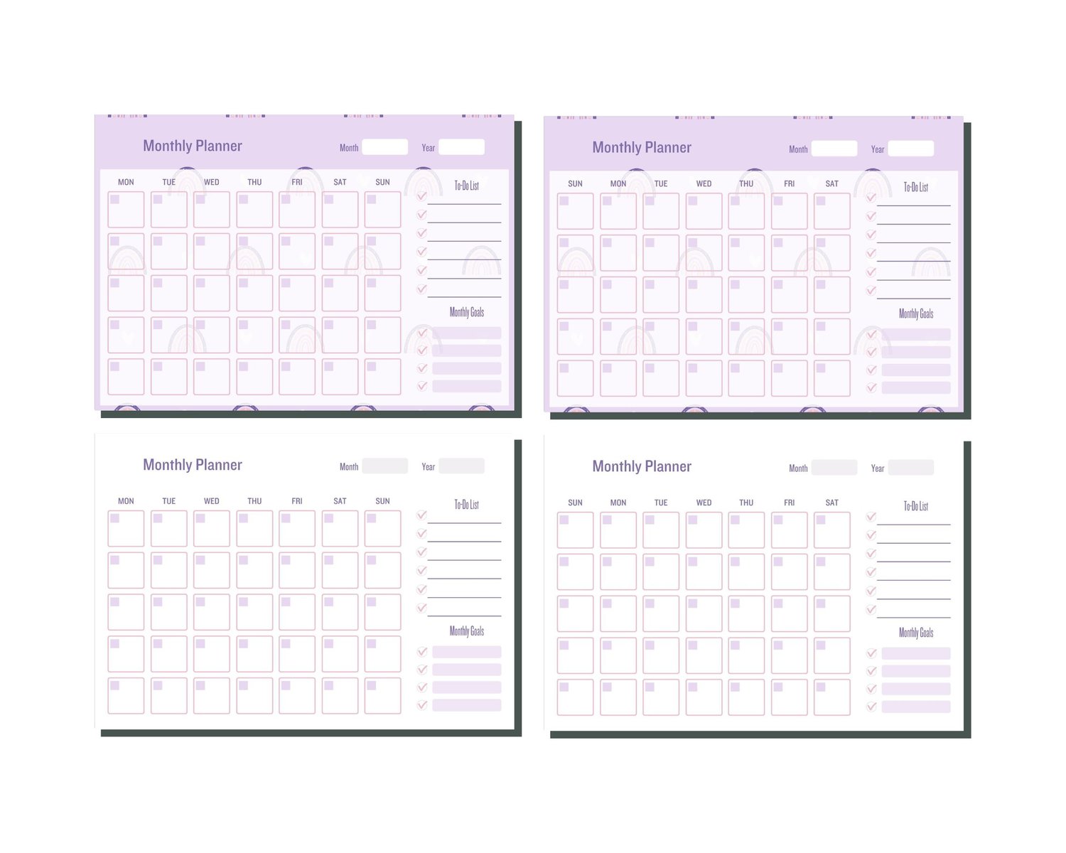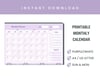Purple Printable Calendar | Printable Undated Monthly Planner | Monthly Calendar | Instant Download