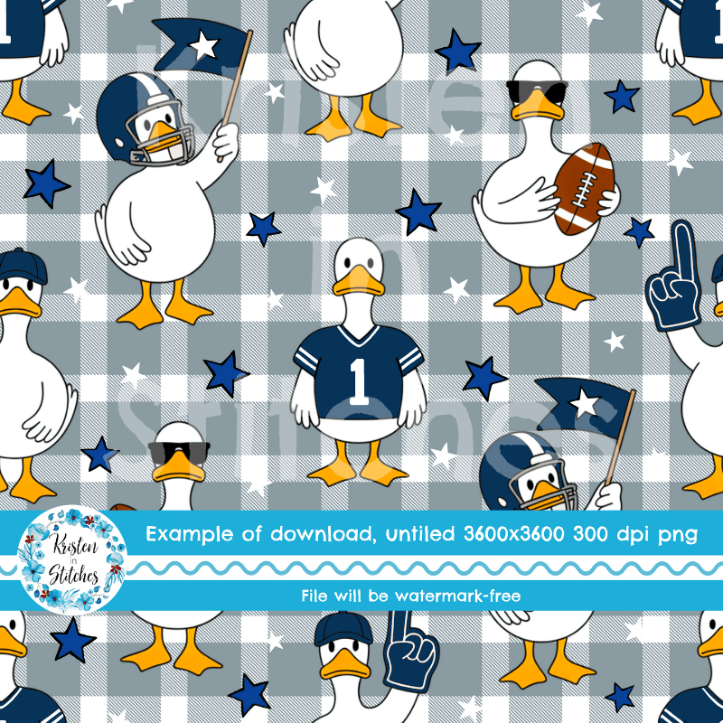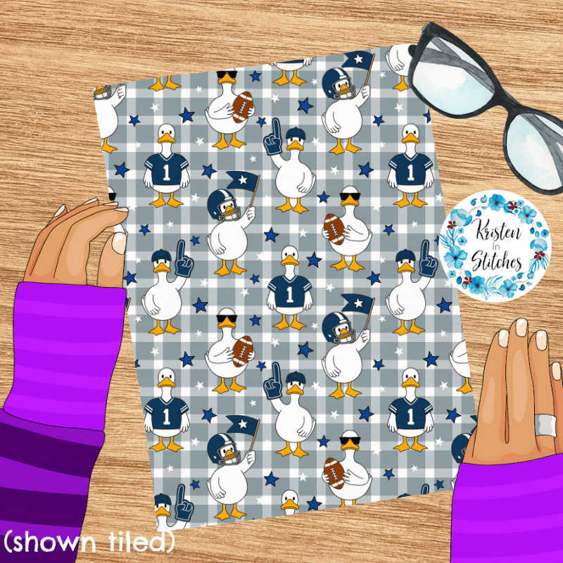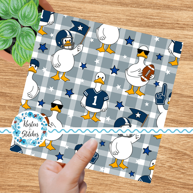 White geese ready for game day! Dallas Cowboys colors blue and silver on gingham plaid.