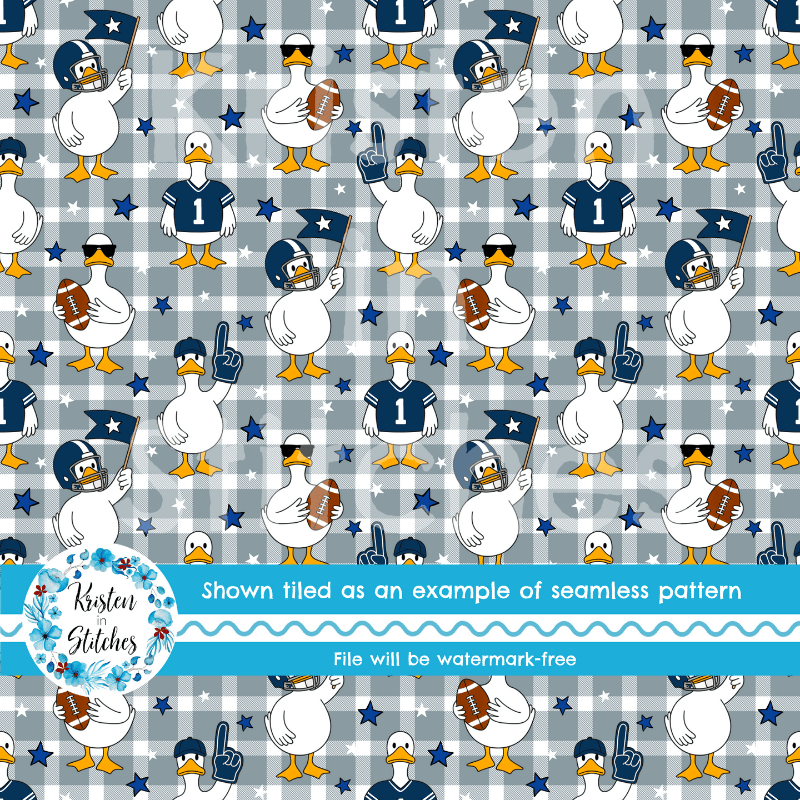 Silly Goose Football Team Spirit Seamless Pattern, Dallas Cowboys Colors