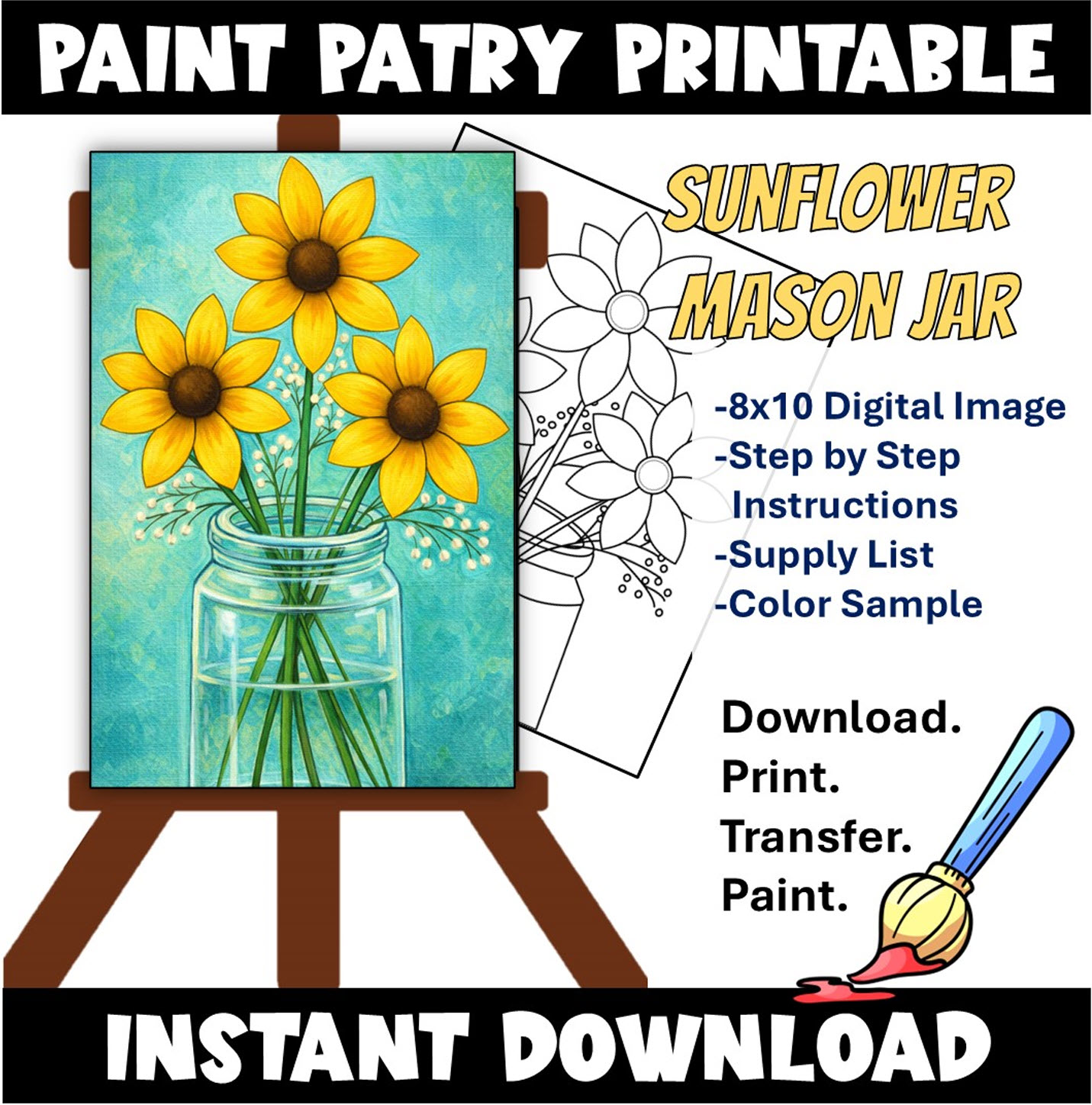 Sunflower Mason Jar Paint Party | Summer Floral Acrylic Painting | Farmhouse Yellow Sunflowers | Beginner DIY Paint Night |Instant Download