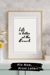 - "Life Is Better at the Beach" quote print