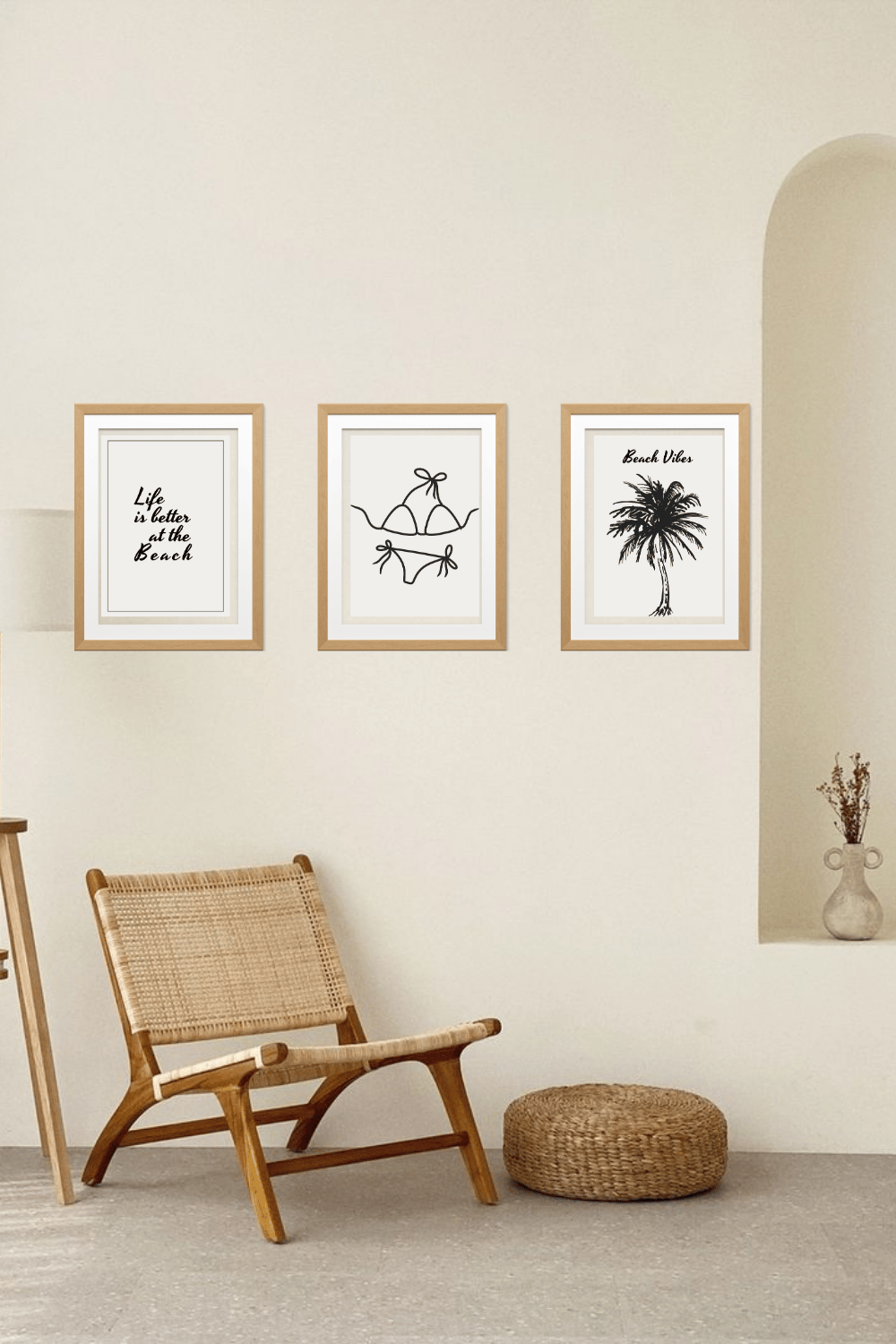 Transform your space with this minimalist coastal wall art set featuring three coordinating digital prints: a stylish bikini line drawing, a modern palm tree illustration, and a clean beach quote design. This set brings a warm, relaxed, beach-inspired aesthetic to any room and is ideal for coastal homes, rentals, offices, studios, or summer decor refreshes.