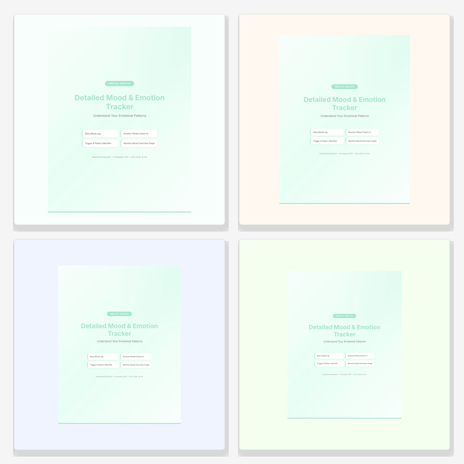 Understand Your Emotional Patterns. Daily Mood Log. Emotion Wheel Check-In. Trigger & Pattern Identifier. Monthly Mood Overview Graph. Available in US Letter (8.5x11) and A4 sizes. Instant download, print at home or at your local print shop. High-resolution PDF. This is a digital download - no physical product will be shipped. © PawsAndVibesArt