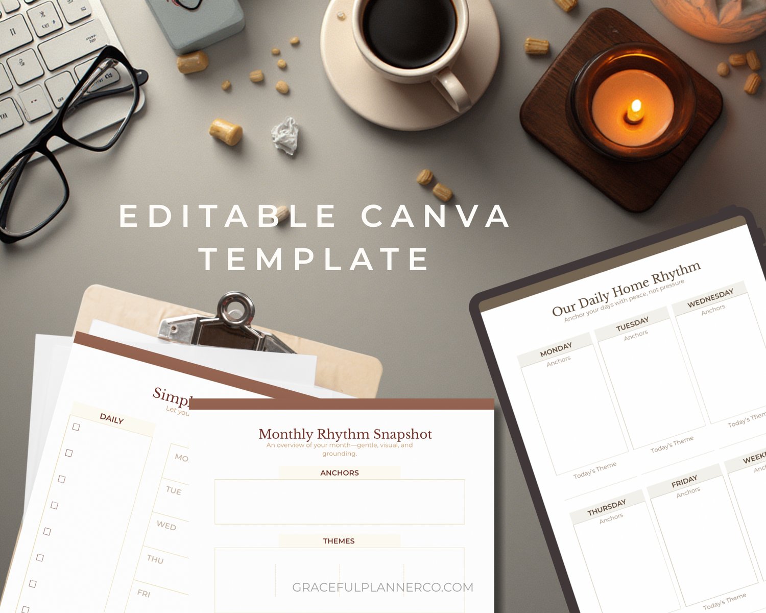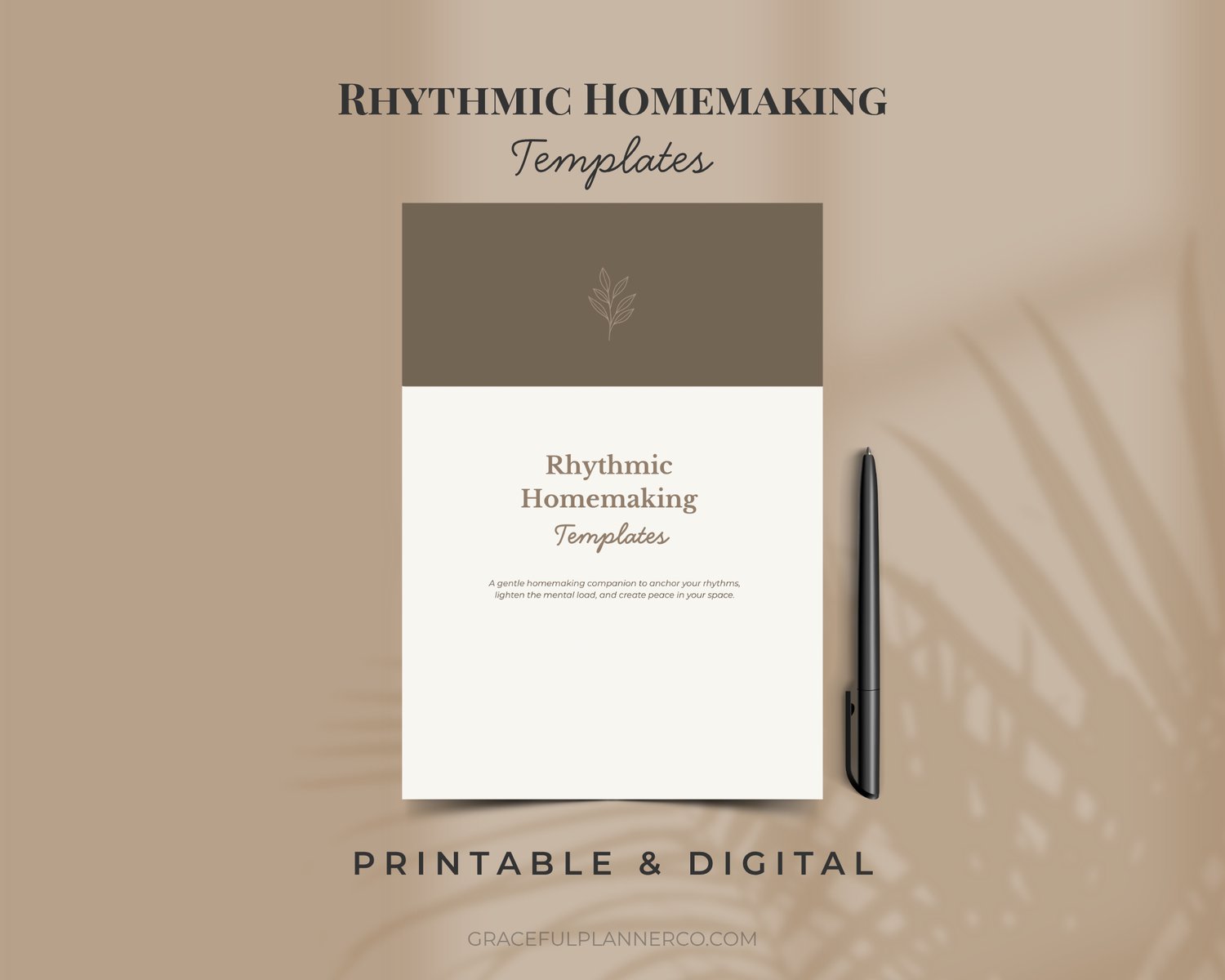 Rhythmic Homemaking Planner Bundle: Editable Cleaning Schedule + Meal Flow Templates (Daily, Weekly, Monthly Reset) | Reduce Mental Load & Overwhelm