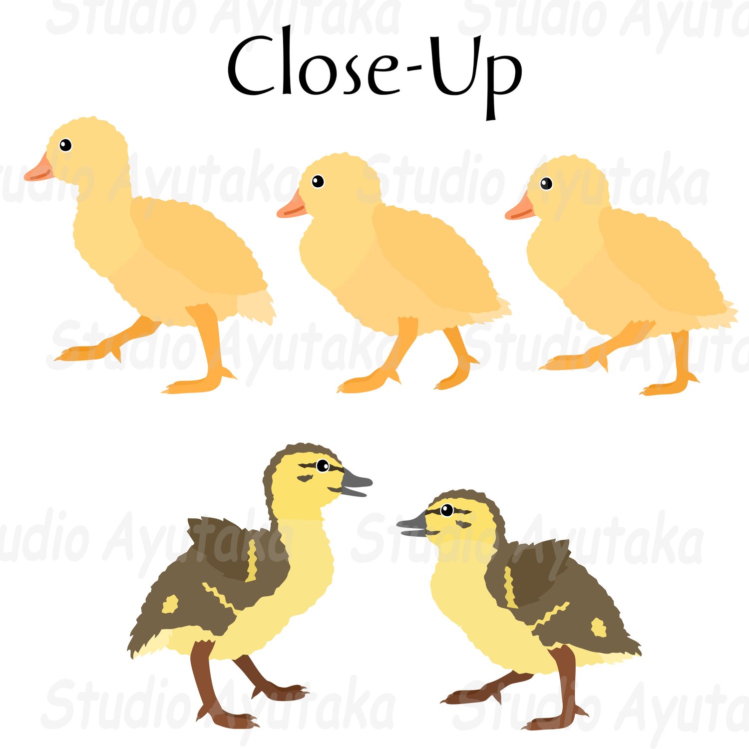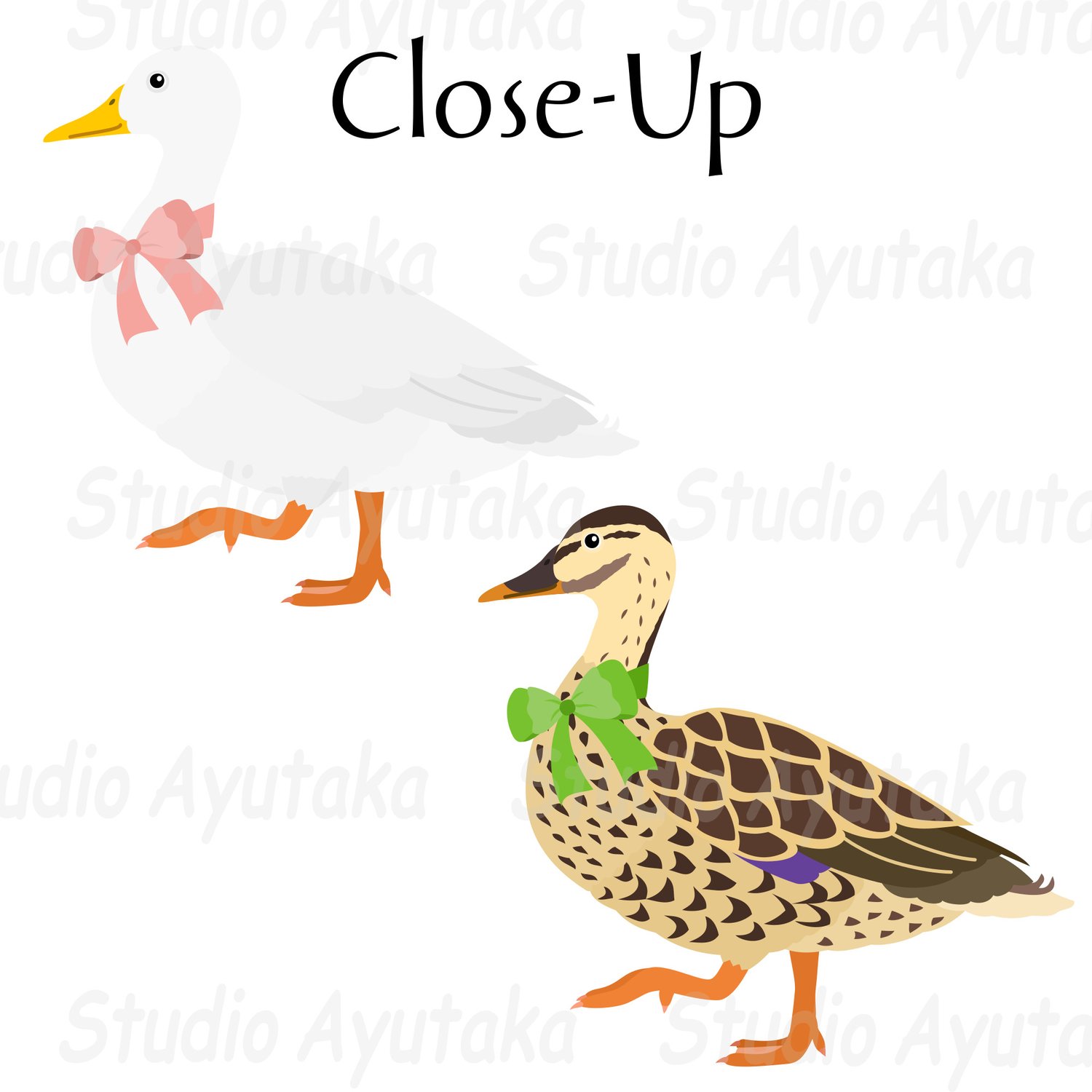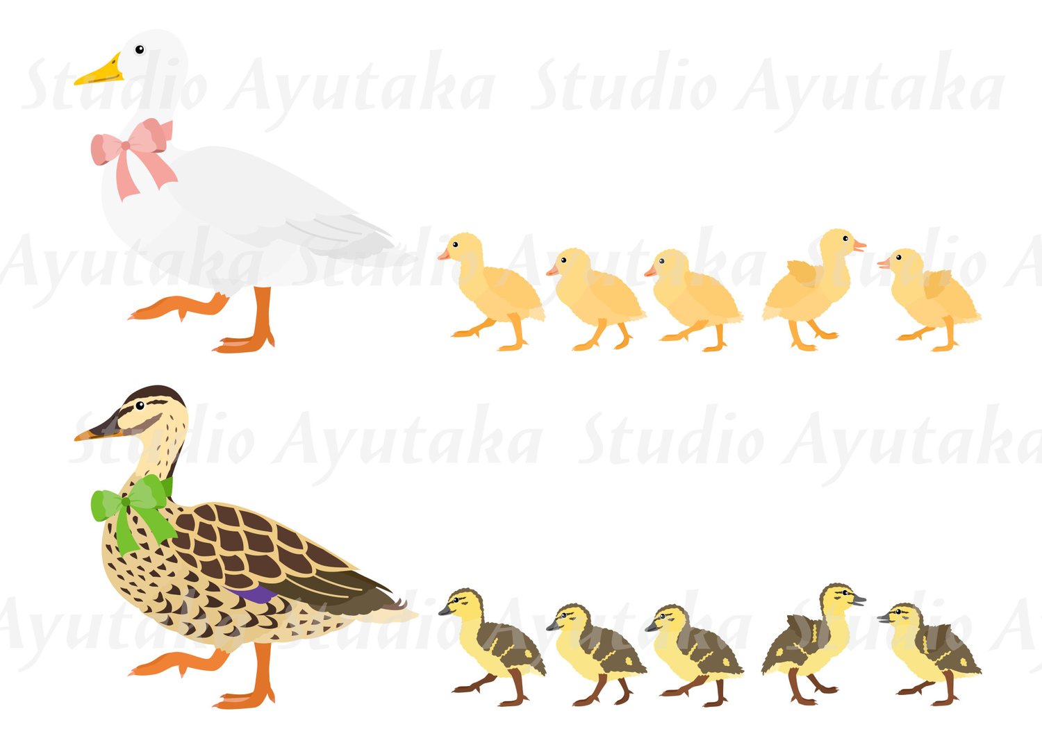 Duck Mom with Bow and Naughty Babies Set - Digital Illustration