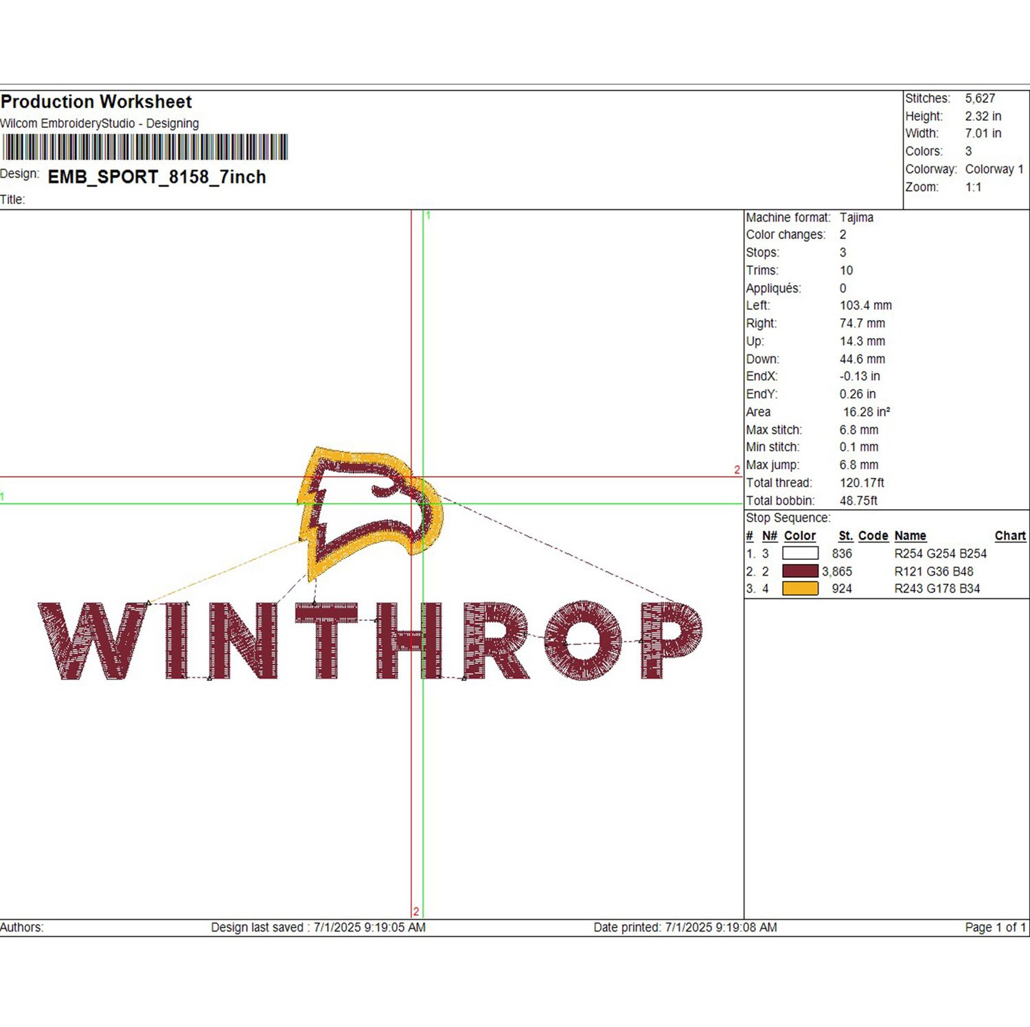 NCAA Winthrop Football Team Writing Logo Embroidery Files, NCAA Winthrop Eagles Team Embroidery, NCAA College Football Teams, Winthrop Eagles Team Emroidery, 3 sizes, Machine embroidery designs, Digital Down