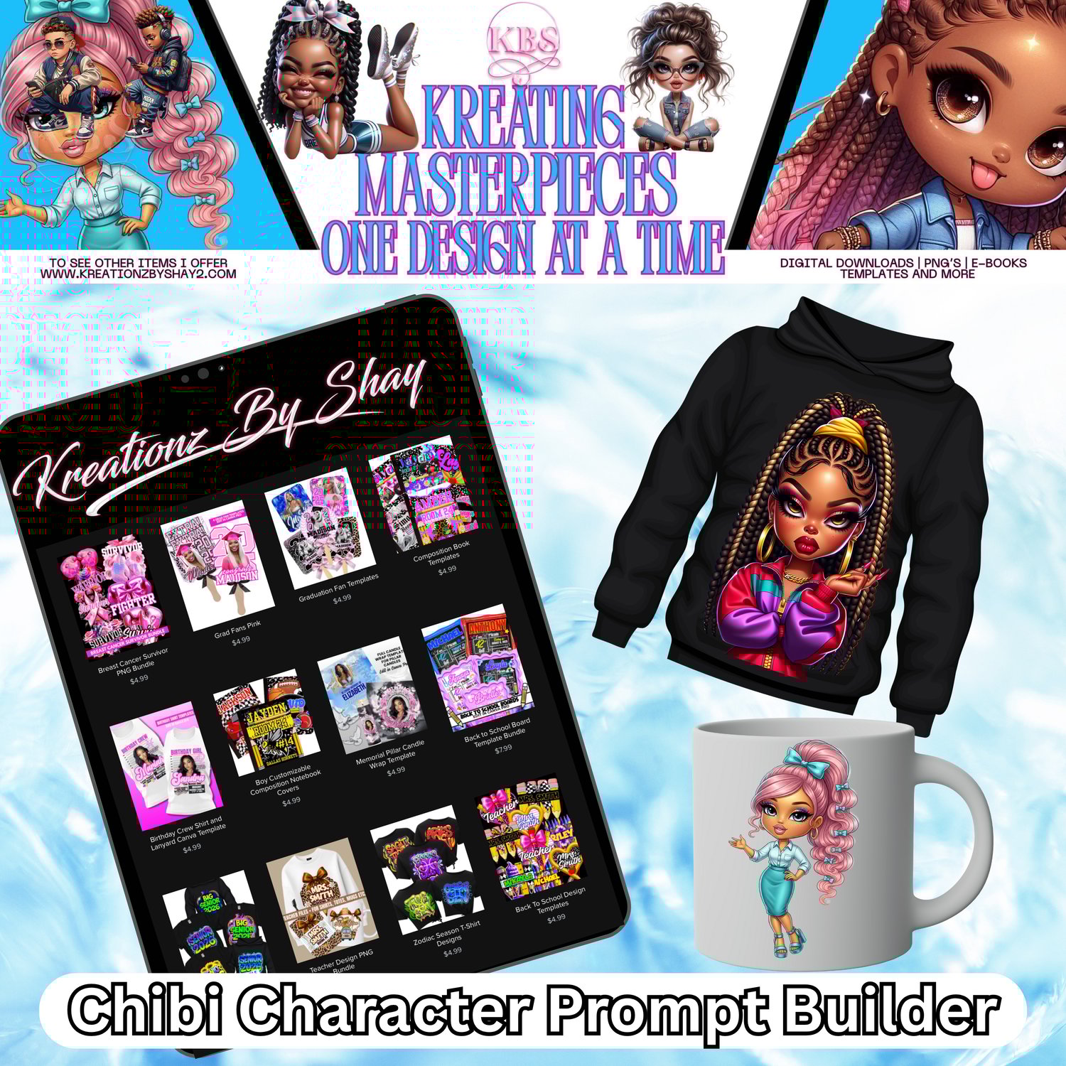 Create adorable, bold, and stylish Chibi characters with ease using this Chibi Character Prompt Generator! Perfect for digital artists, merch creators, and entrepreneurs who love that cute-yet-fierce aesthetic. With endless combinations, you’ll always have fresh, fun character designs ready to go.