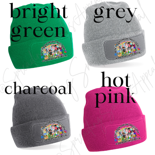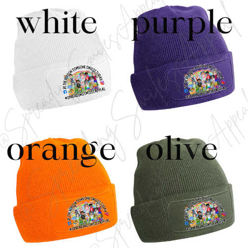 These beanie hats are made from the highest quality materials, Super comfy and soft. Very warm and snug perfect for these chilly winter days has the spreading smiles appeal custom logo on the front.