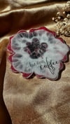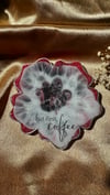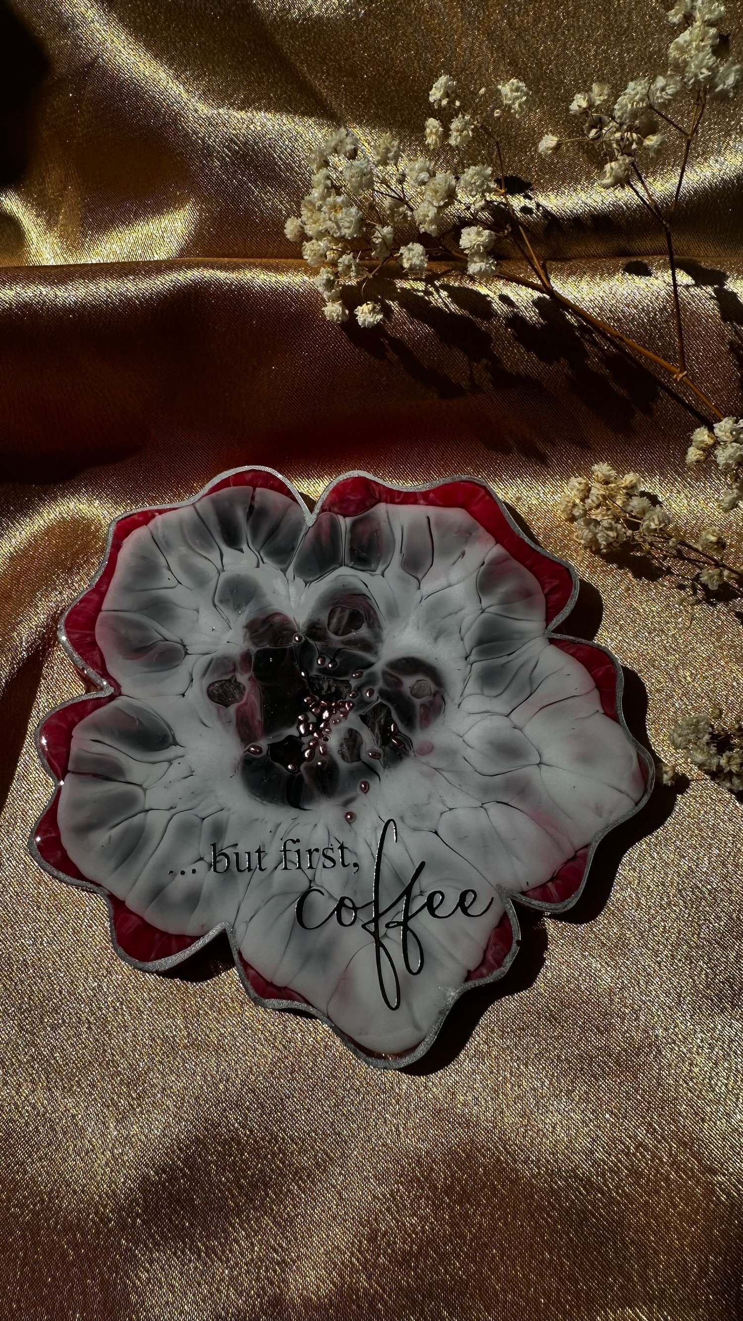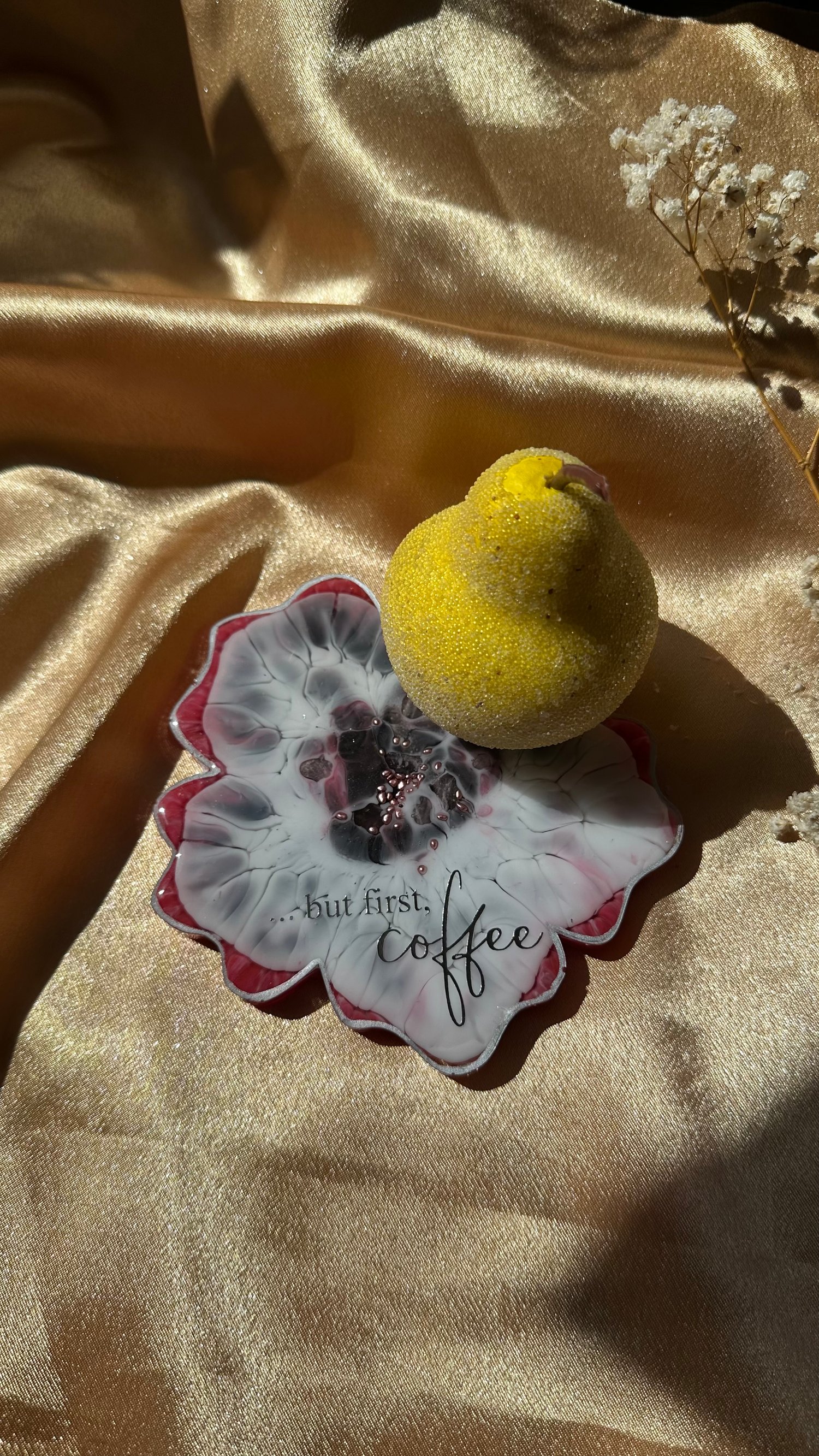 An enchanting handmade coaster in the shape of a delicate flower, created for true coffee lovers and those who cherish their morning rituals.