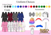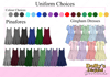 White, light grey, dark grey, black, turquoise, light blue, blue, navy, purple, dark purple, pink, red, burgundy, brown, yellow, gold, sea Green, green, dark green.