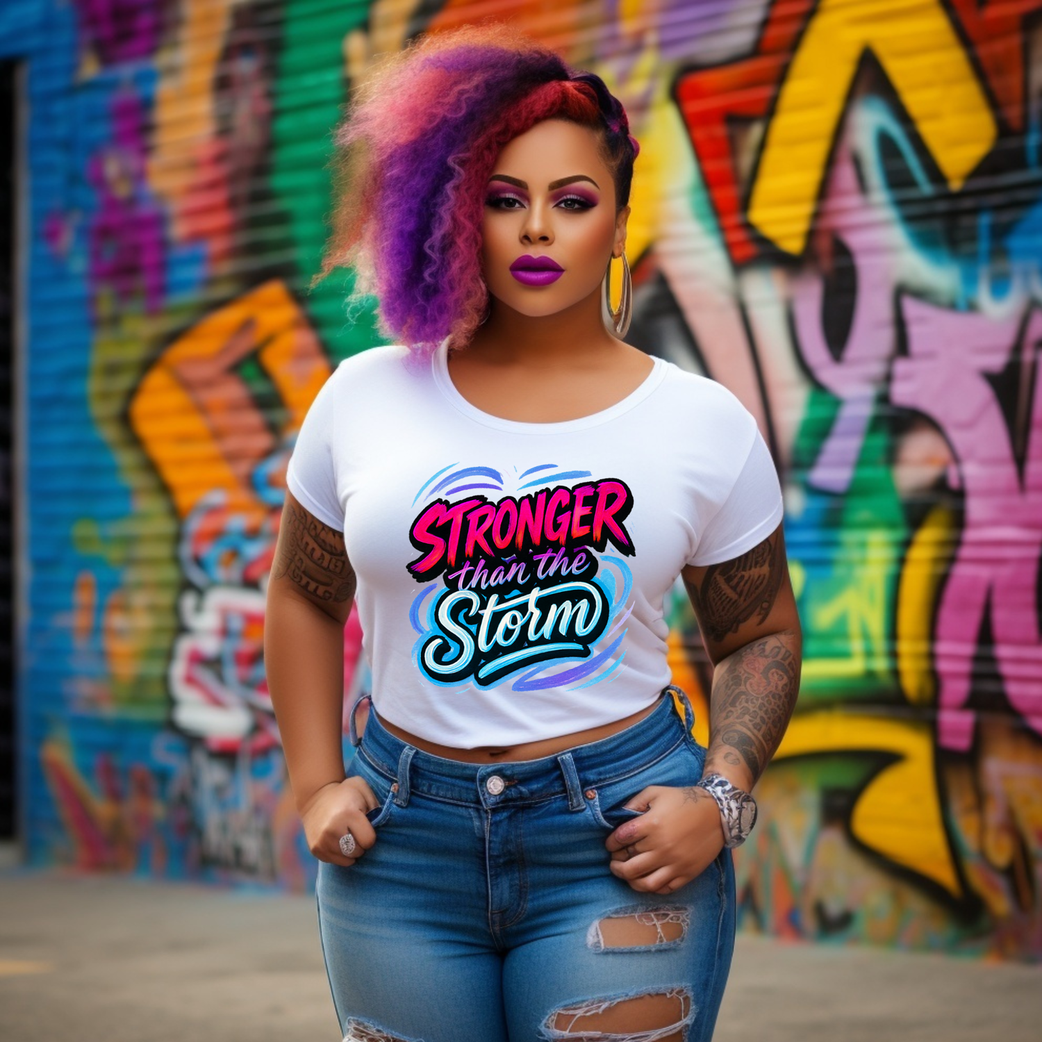 Stronger Than the Storm PNG | Empowerment Quote Sublimation Design | Motivational Neon Graffiti Art | Instant Download