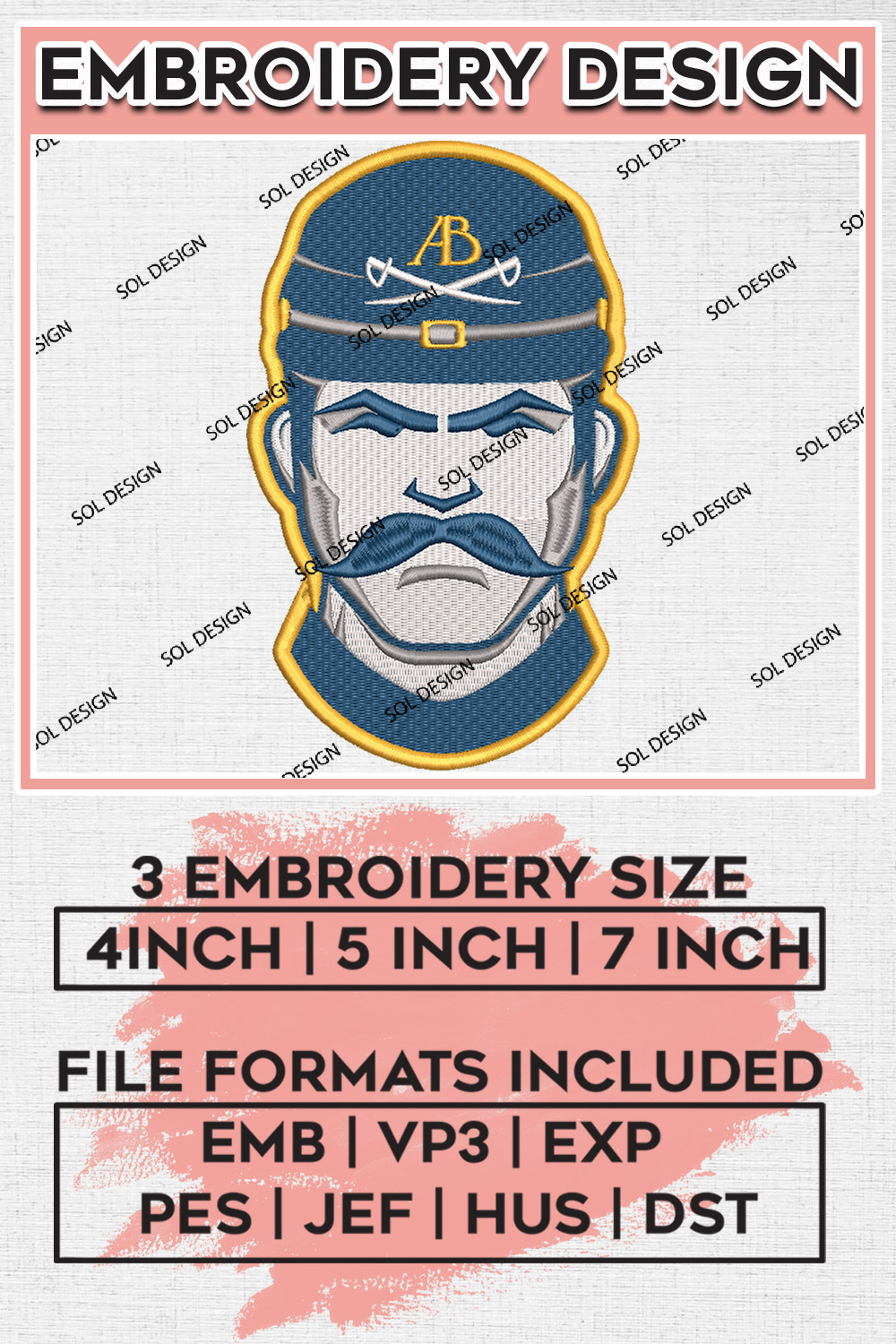 Alderson Broaddus Battlers College Football Team Head Mascot Logo Embroidery Designs, Ncaa Embroidery Files, NCAA Alderson Broaddus Battlers Team Logo Embroidery, Game Day Machine Embroidery Design, Digital Download