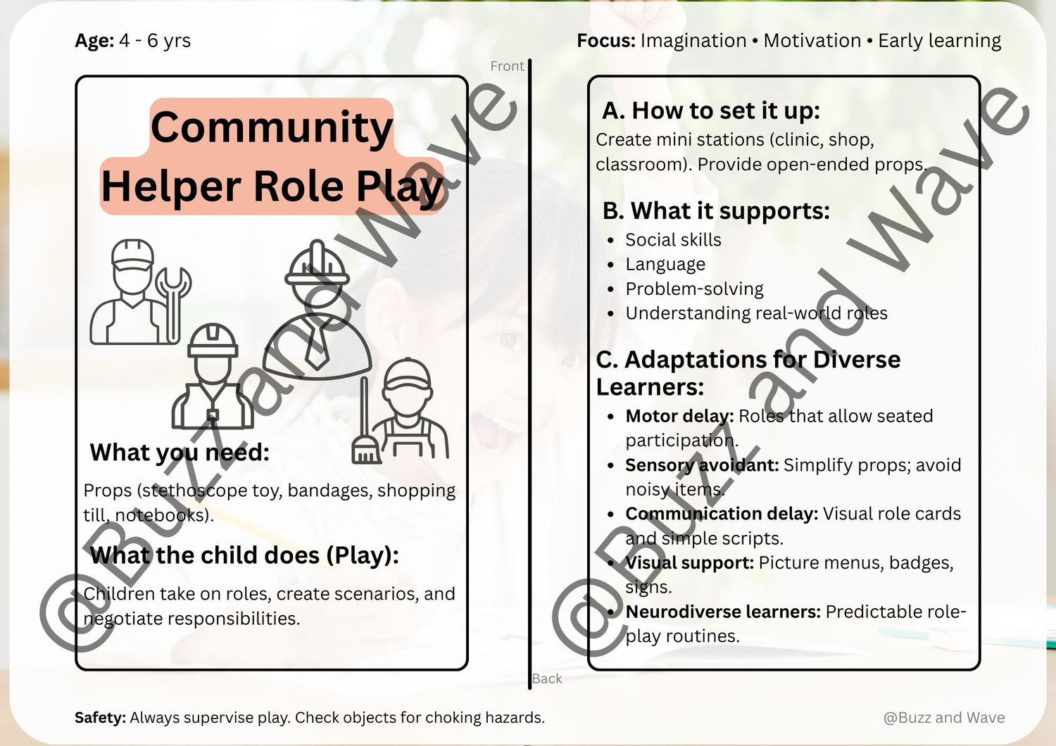 Inclusive/Play-Based Cards (4-6 Years): School Readiness, Teacher-Designed Activities