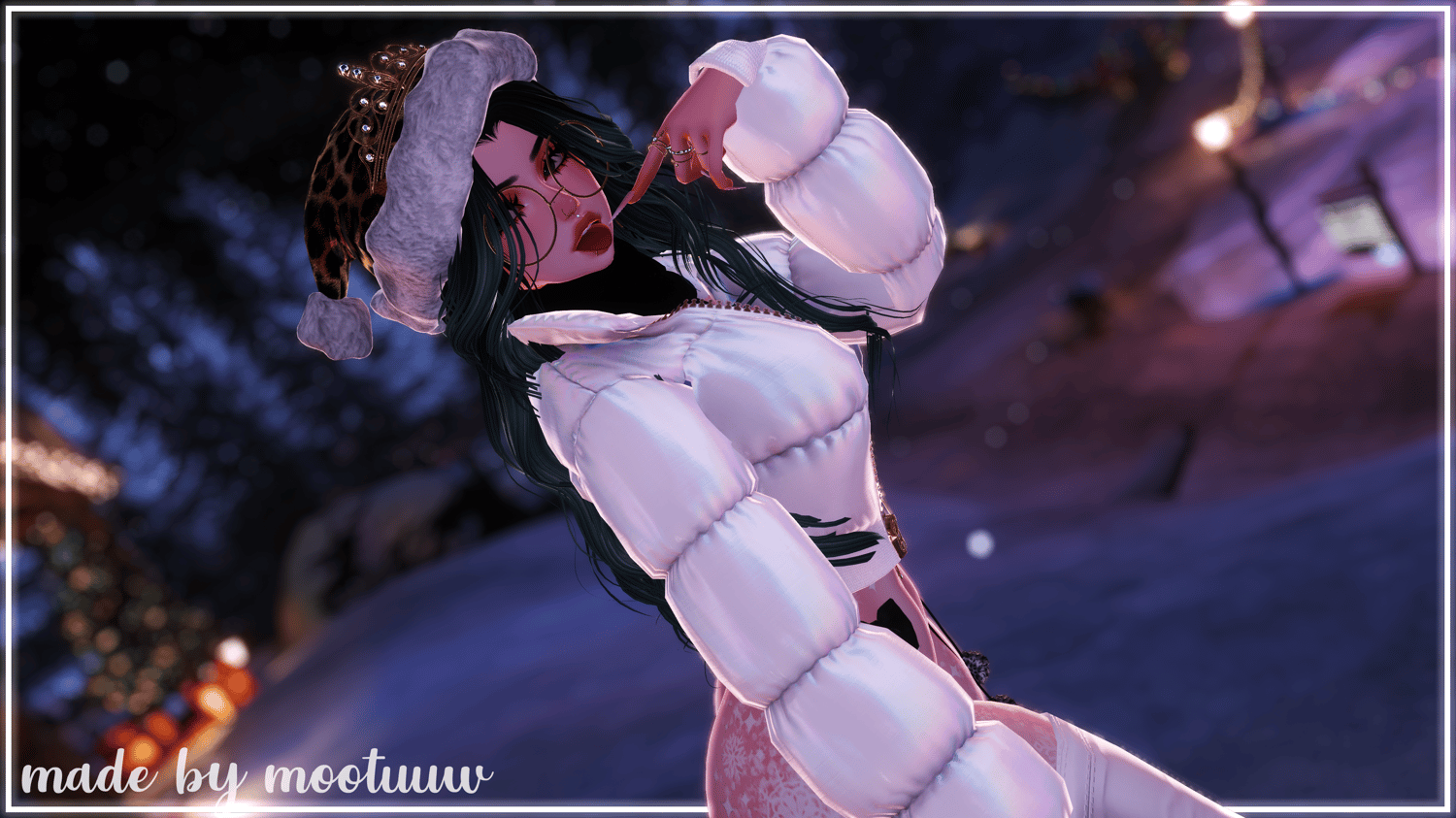 Body Panda Base NOT FOR REUSE pandaabear │Head NOT FOR REUSE sivka & adjerry91│Ears beanie│Lashes NOT FOR REUSE sivka│Hair nessy │Head Texture yingyang & miing & jvliette│ Eye Texture fair│Nails yaoomi│Tattoo Texture maddiiee│Deer Ears/Antlers whituu│Beanie hayweeesstash│Muffs aika│Headband nessy│Scarf/Warmers yaoomi│Jewlery rebeeca &beanie& pinkraccoon│Glasses aika│Leggings/Skirt beanie│Santa Hat nessy│Sweater Set/Bikini aika │Low Boots/Socks saikura│Thigh High Boots wetcat│Boots aika│ Socks Long honeylab │Heart Sweater lokisvanity│Puffer lunarreef│Bear Hood zeffyrsfantasaia│Deer Plush│Baby Dress honeylabs│ Snow Effects PixelTopia│Matcaps Svika│Av3 Emulator│Follower Aple Juu│