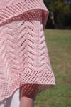 This shawl can be knit in two sizes; a shawlette size designed to use a single skein of fingering/4ply yarn or a larger snugglier shawl size.