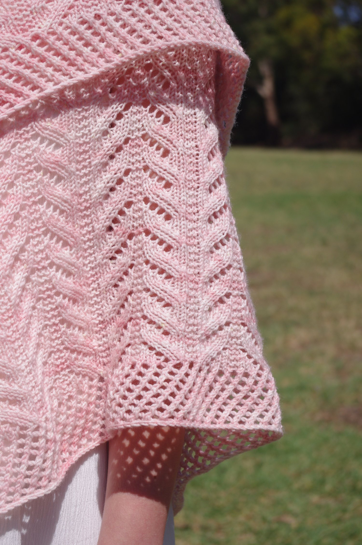 Shawl sample shown in Revelry Sock Southern Fulmar.