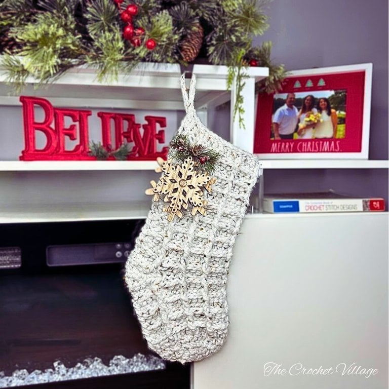 Create a beautifully textured Christmas stocking with this instant-download crochet pattern!