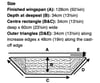 Outer triangles (D&E): 34cm (13½in) along increase edges x 48cm (19in) along the cast-off edge