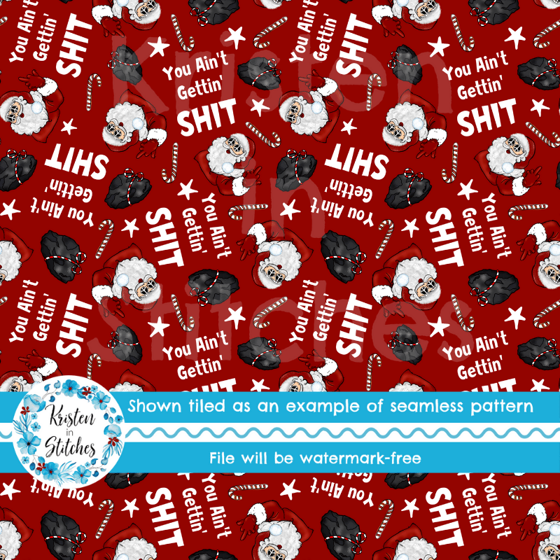 You Ain't Gettin' Shit Santa's Naughty List Funny Sarcastic Christmas Seamless Pattern