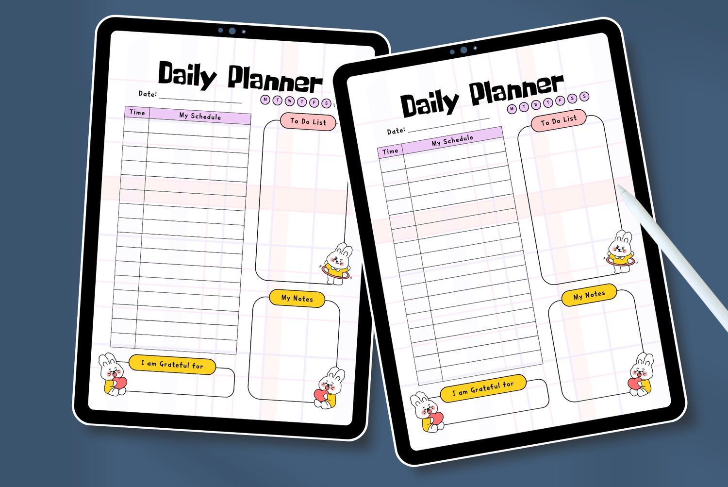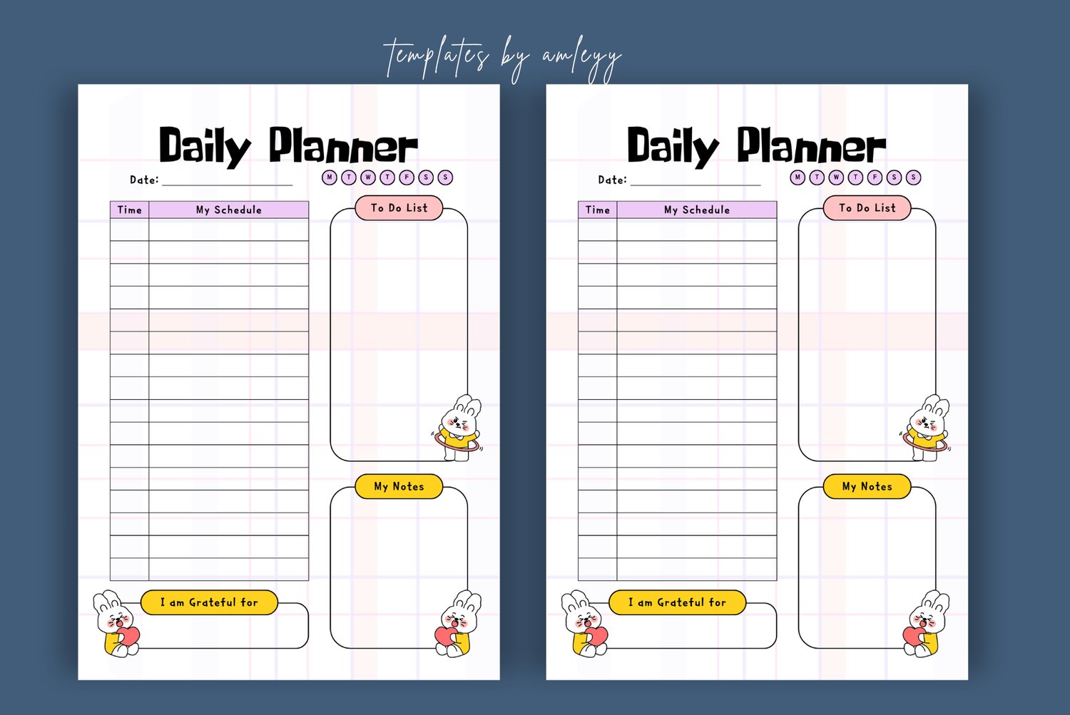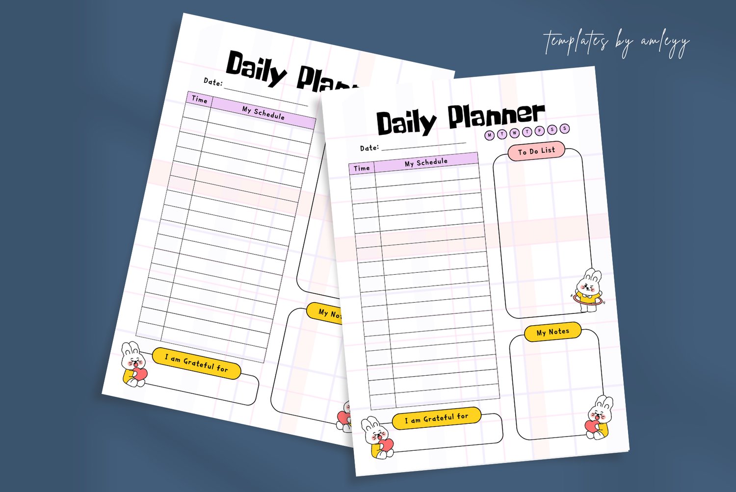 Kawaii Aesthetic Daily Planner Template – Cute Editable