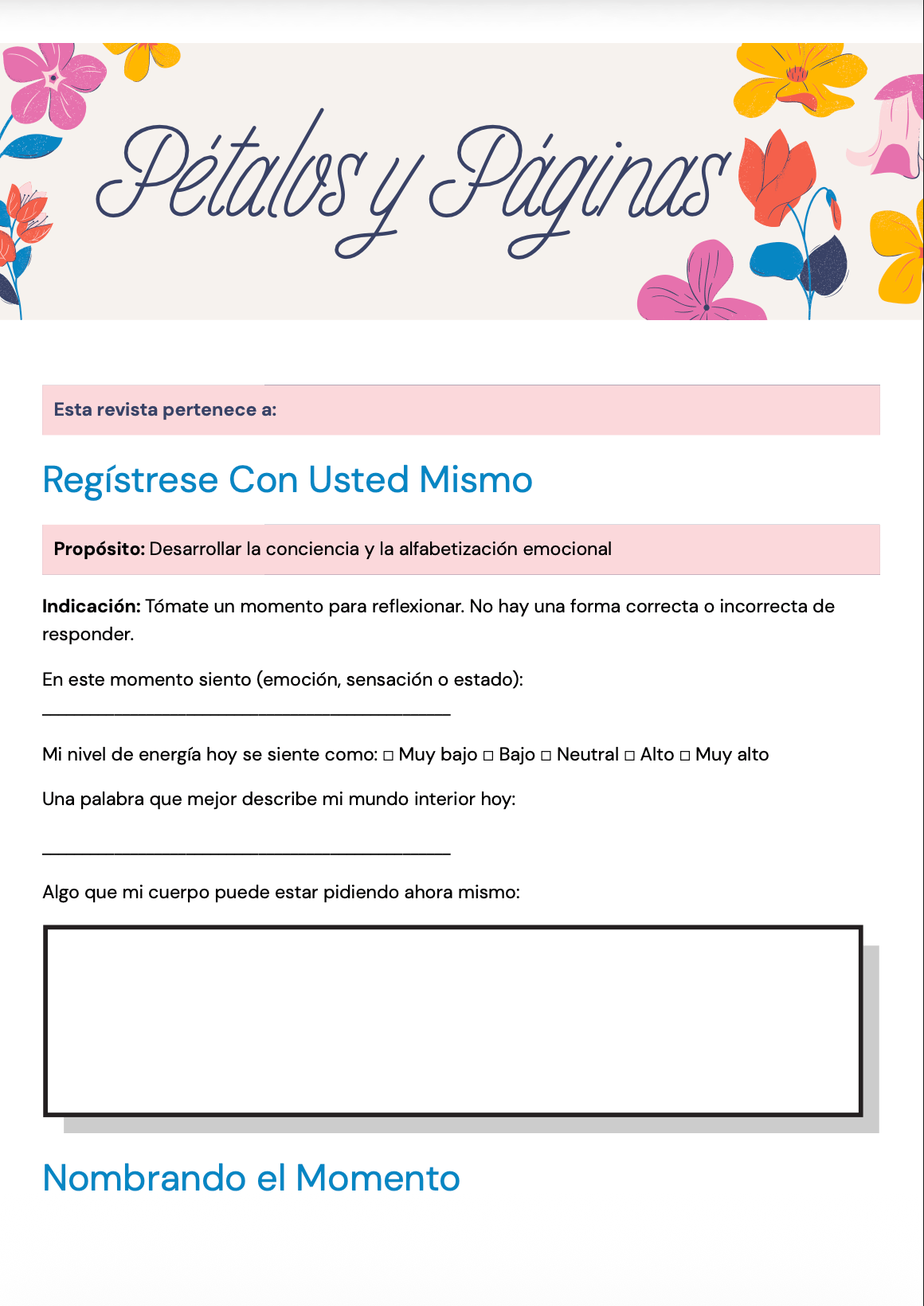 Pétalos y Páginas™: Un Diario Guiado para la Reflexión, el Crecimiento y el Bienestar Emocional