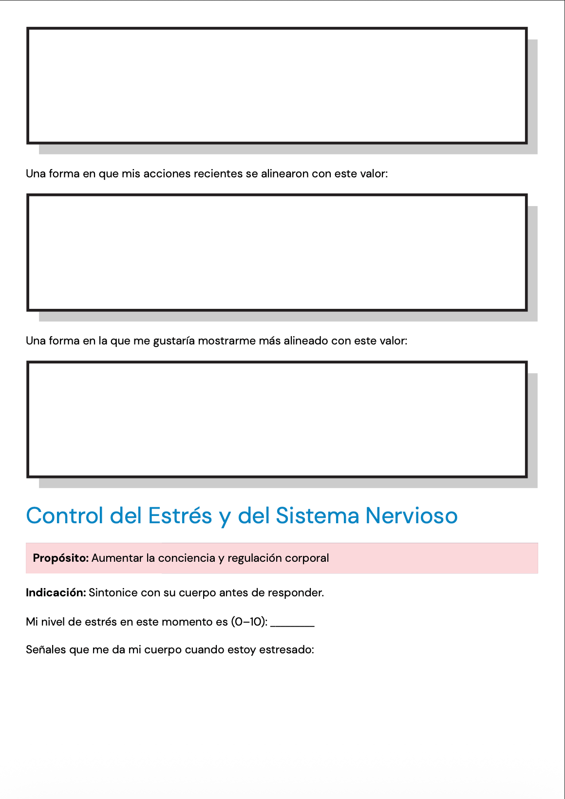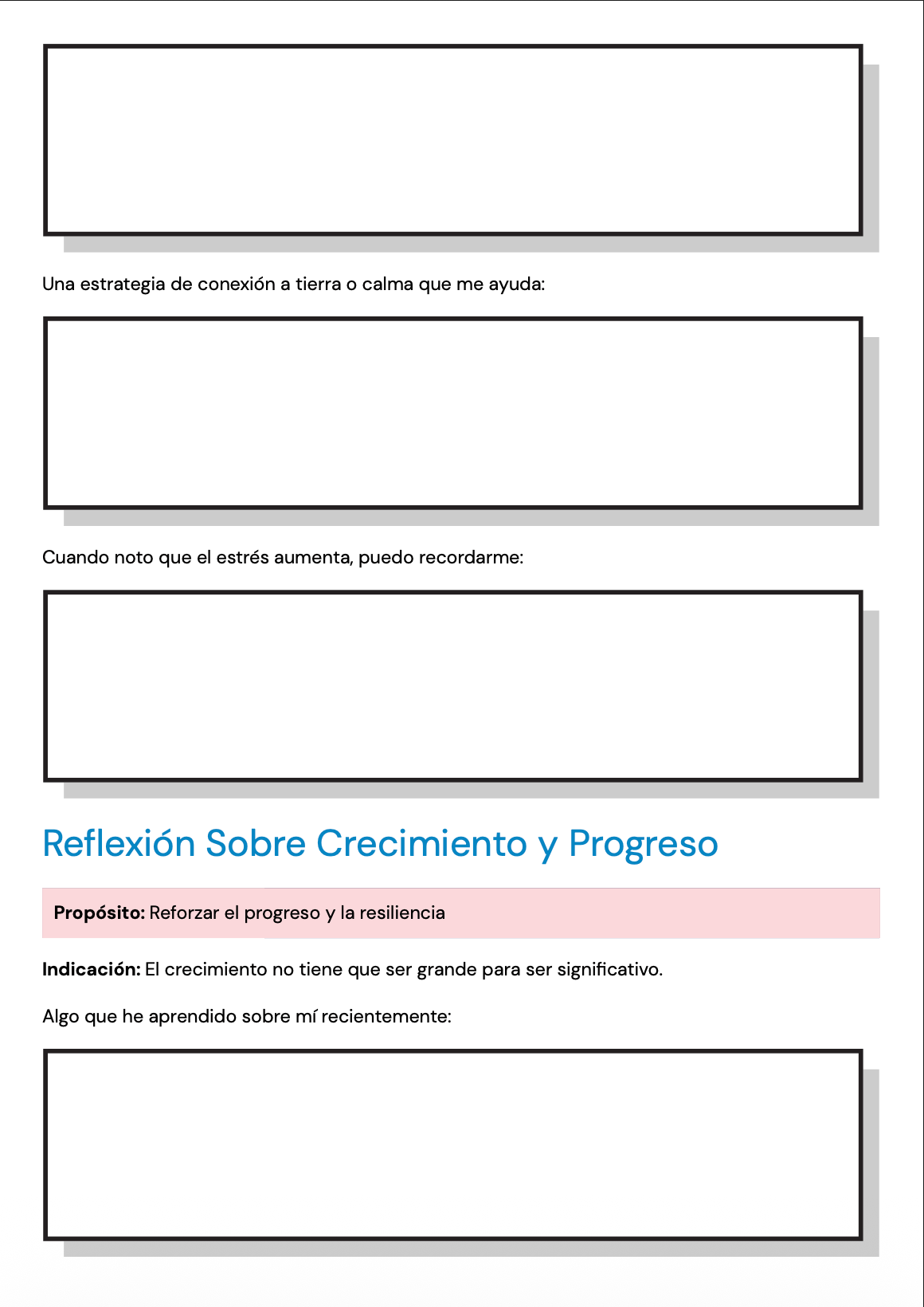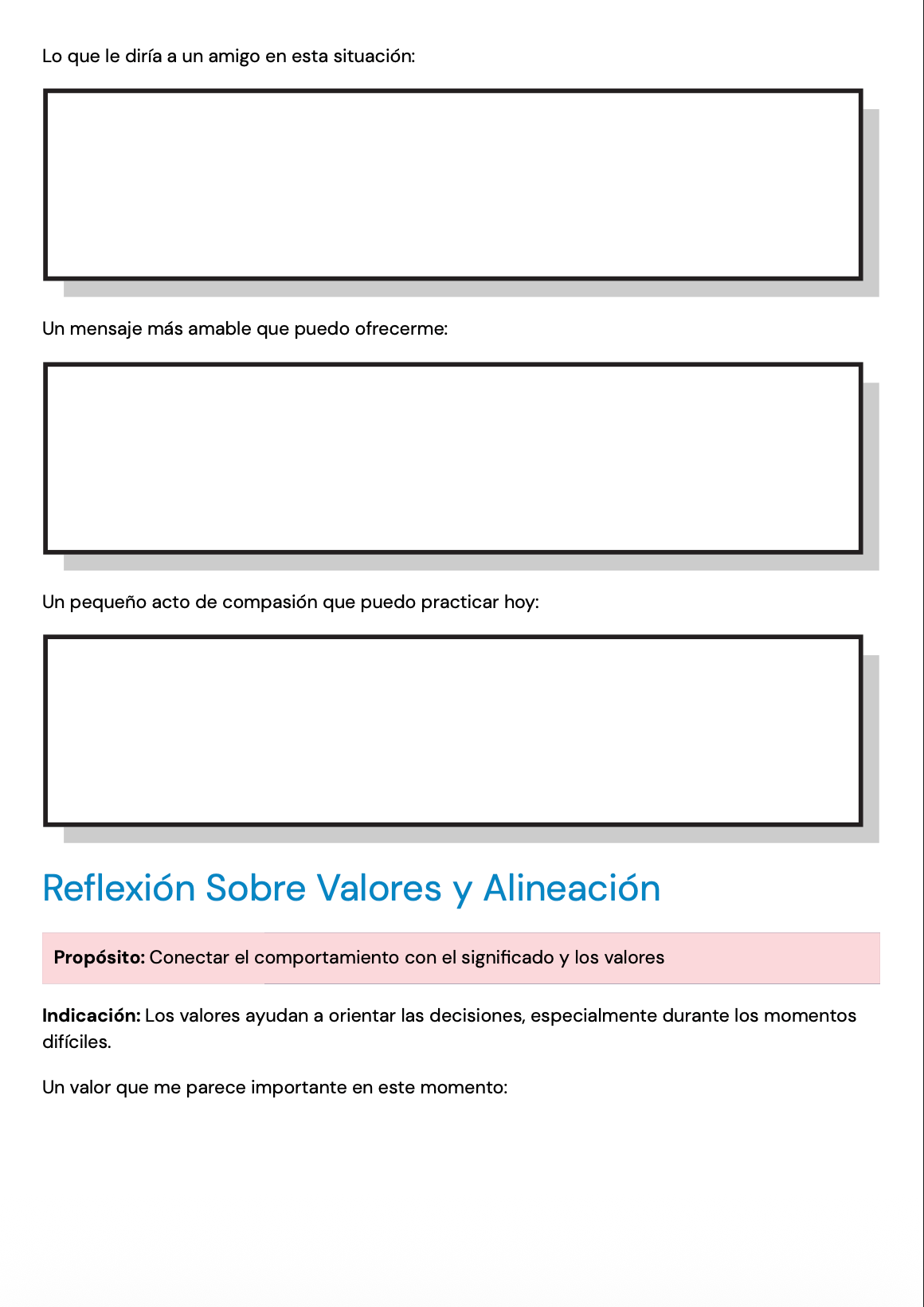 Las páginas están redactadas con un lenguaje claro, neutral y apropiado para personas adultas, lo que las hace adecuadas para una amplia variedad de clientes y enfoques terapéuticos. Pueden utilizarse en terapia individual, terapia grupal o como reflexión entre sesiones para profundizar el insight y apoyar el procesamiento emocional.