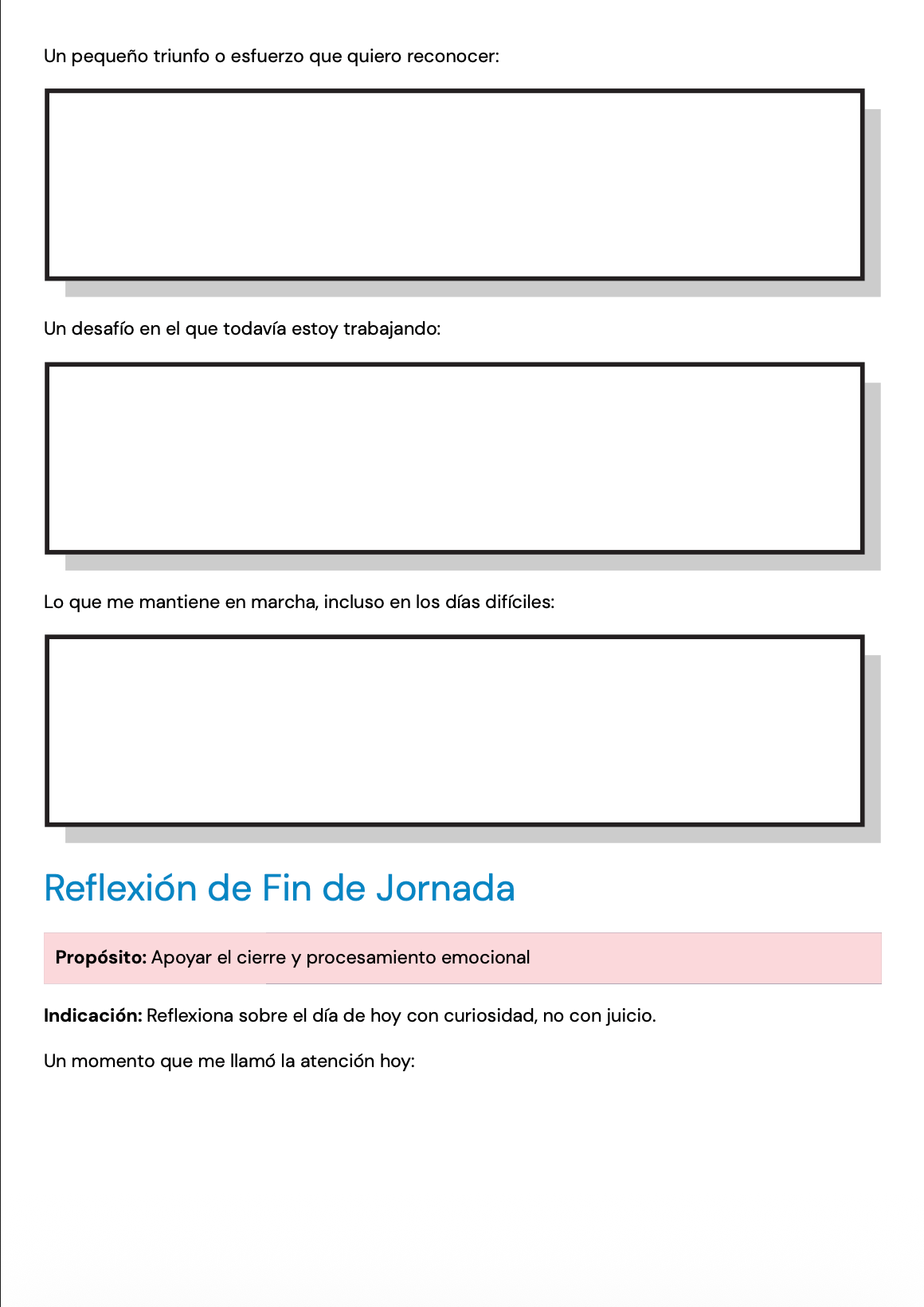 Estas Páginas de Reflexión para el Diario están diseñadas para apoyar a personas adultas en el desarrollo de la autoconciencia, la comprensión emocional y la autocompasión. Este recurso digital, creado por una Consejera de Salud Mental Licenciada (LMHC), ofrece a profesionales de la salud mental ejercicios de escritura reflexiva listos para usar en sesión, con un enfoque flexible y clínicamente informado.