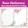 Printable Rose Stationery | Floral Stationery | Printable Rose Writing Paper | Floral Note Paper | Rose Penpal Paper