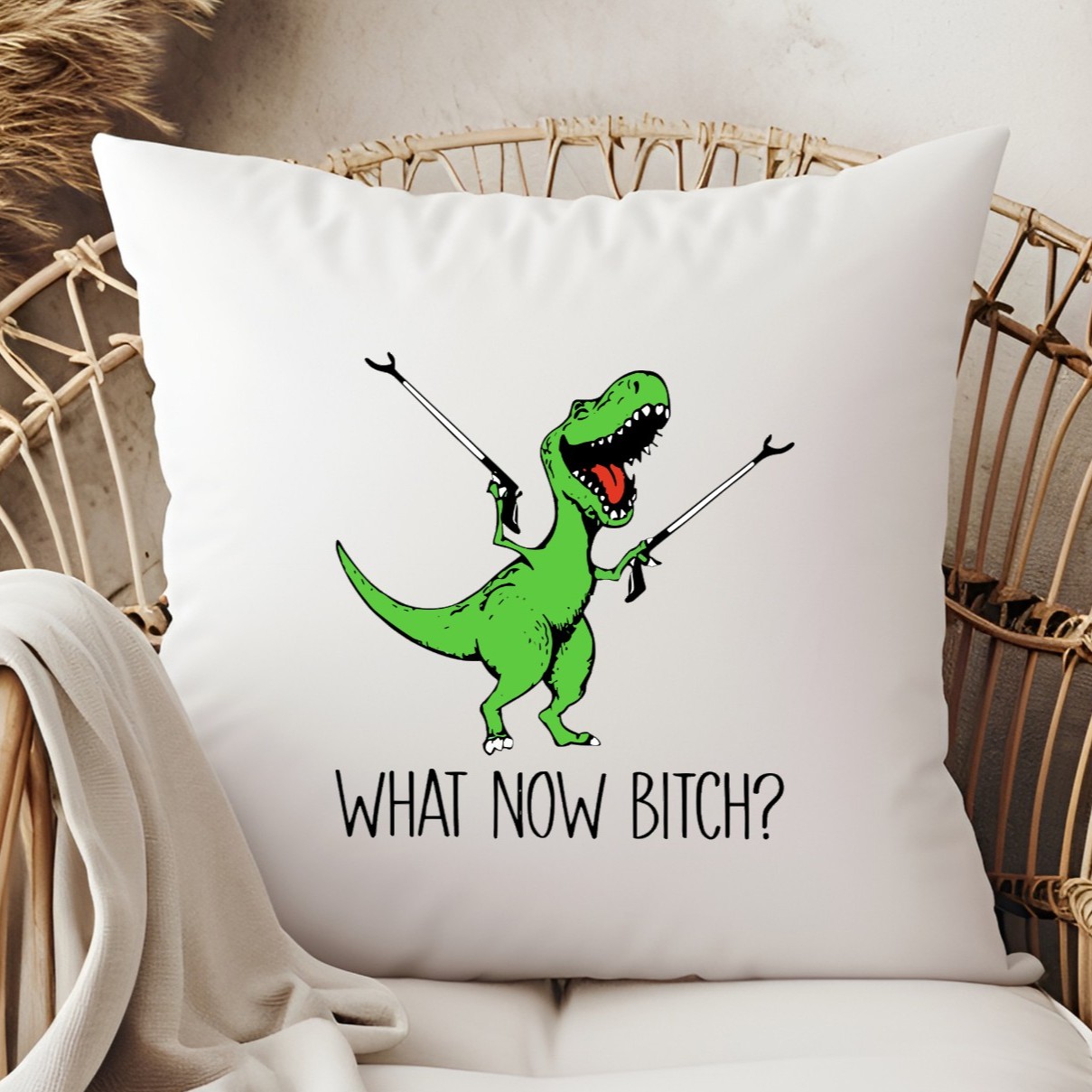 What Now Bitch T Rex Dinosaur Funny Sarcastic Decorative Throw Pillow Cover 16