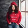 Plus Size Woman, Blank Red Long Sleeve T-shirt Mockup Photo, Winter Background, Sweatshirt Mockups, Designer Mockups, Mockup Photos, Winter Mockups